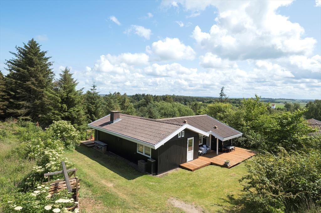 Sommerhuset ligger i naturskønne Tranum – et område, der er kendt for sin fredelige atmosfære og helt unikke natur. Allerede få minutters gang fra huset finder du indgangen til Fosdalen og Langdalen, to af Danmarks smukkeste og mest særprægede naturområder med stejle skrænter, rislende kilder og betagende udsigter over Jammerbugten. Her kan du nyde både rolige gåture og mere krævende vandreruter året rundt. Tranum byder også på lokale gallerier, hyggelige gårdbutikker og med kun en kort køretur til kysten, har du samtidig nem adgang til brede sandstrande og Vesterhavets friske vind. Efter en dag fyldt med naturoplevelser er det skønt at vende hjem til terrassens ro og mærke, hvordan skuldrene falder helt ned.
