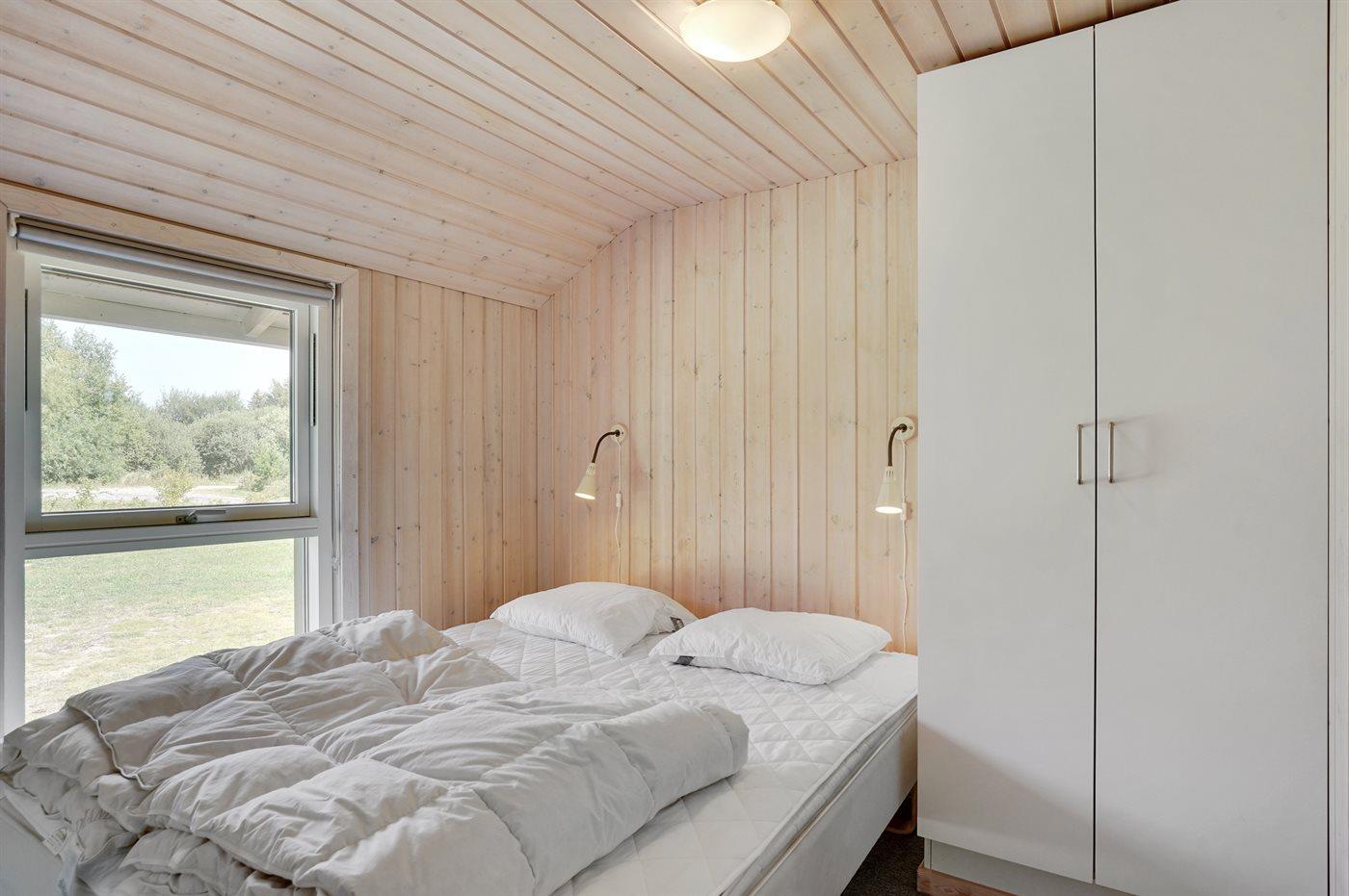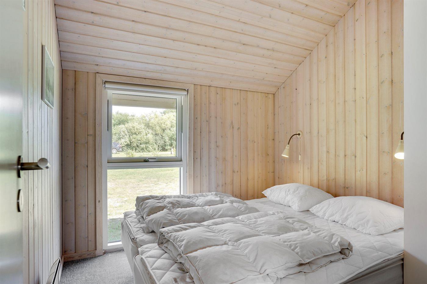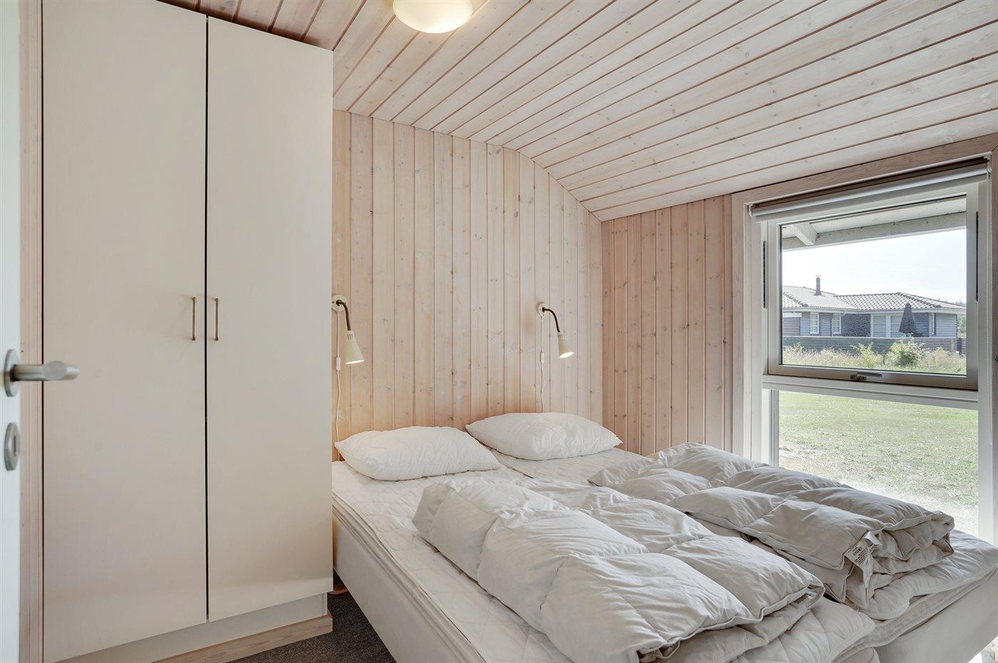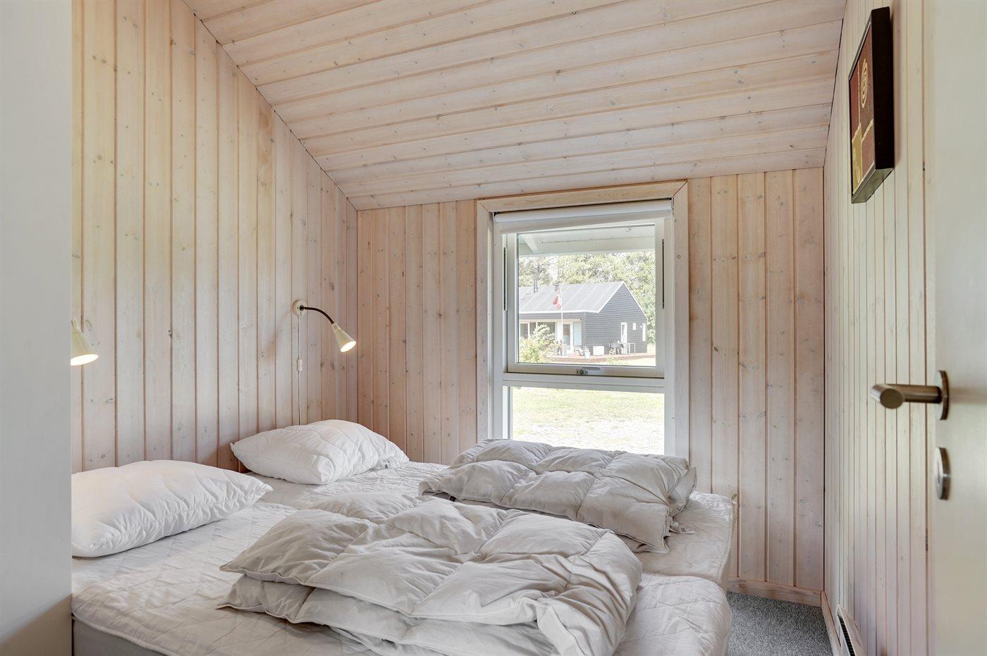 Der er i alt 4 soveværelser. Sovepladserne fordeler sig på: 8 sovepladser i dobbeltsenge. 2 sovepladser på madrasser. 2 af disse sovepladser befinder sig på husets hems med udtræksstige. Derudover er der 1 stk. barneseng.