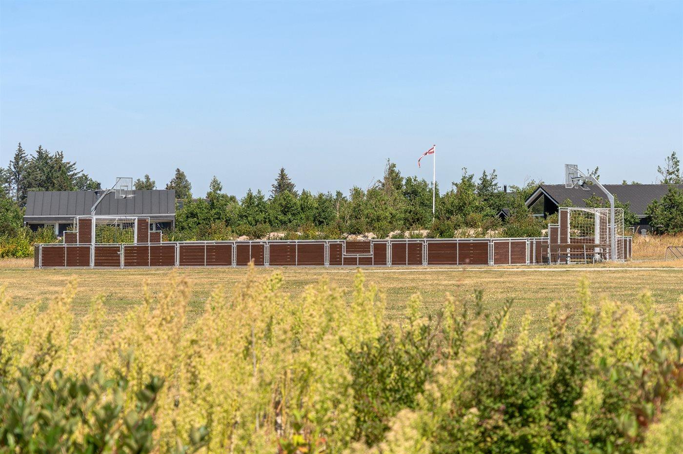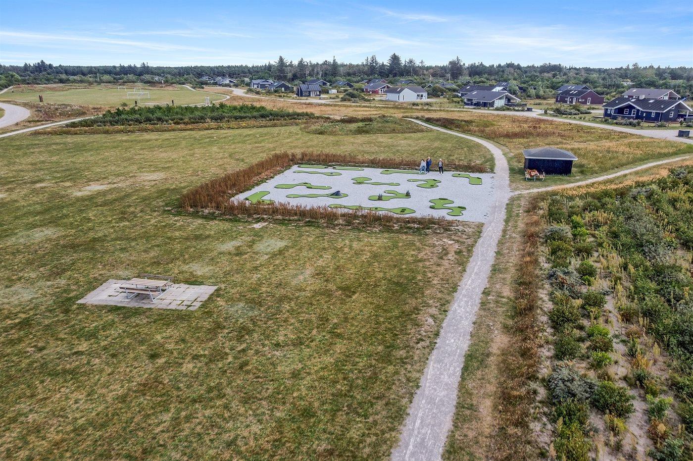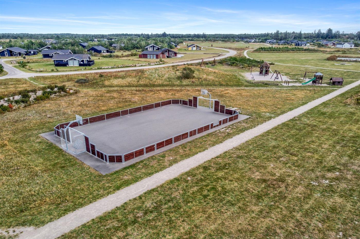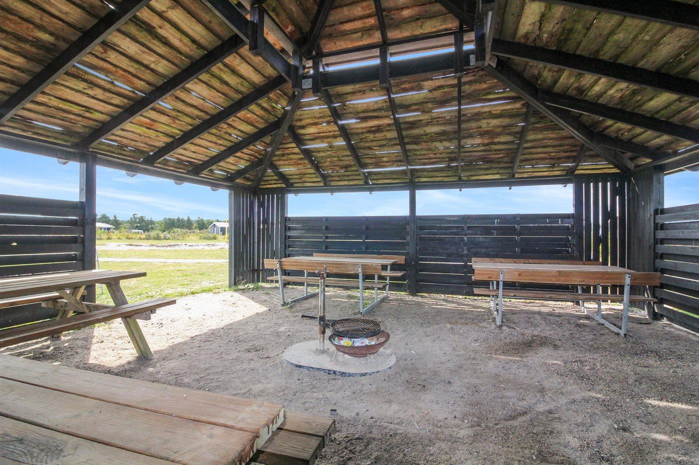 Ferieboligen er beliggende på en 2395 m² stor naturgrund. Der er 4000 m til havet. Nærmeste forretning er beliggende i en afstand af 2000 m. Til ferieboligen hører 60 m² terrasseareal. Desuden er der 8 m² overdækket terrasse. Der er redskabsrum. Gynge. Der ligger en legeplads i en afstand af 300 m. Der er installeret stik til opladning af elbil. CEE stik. Med 16 kW ladeeffekt. Parkering ved ferieboligen.