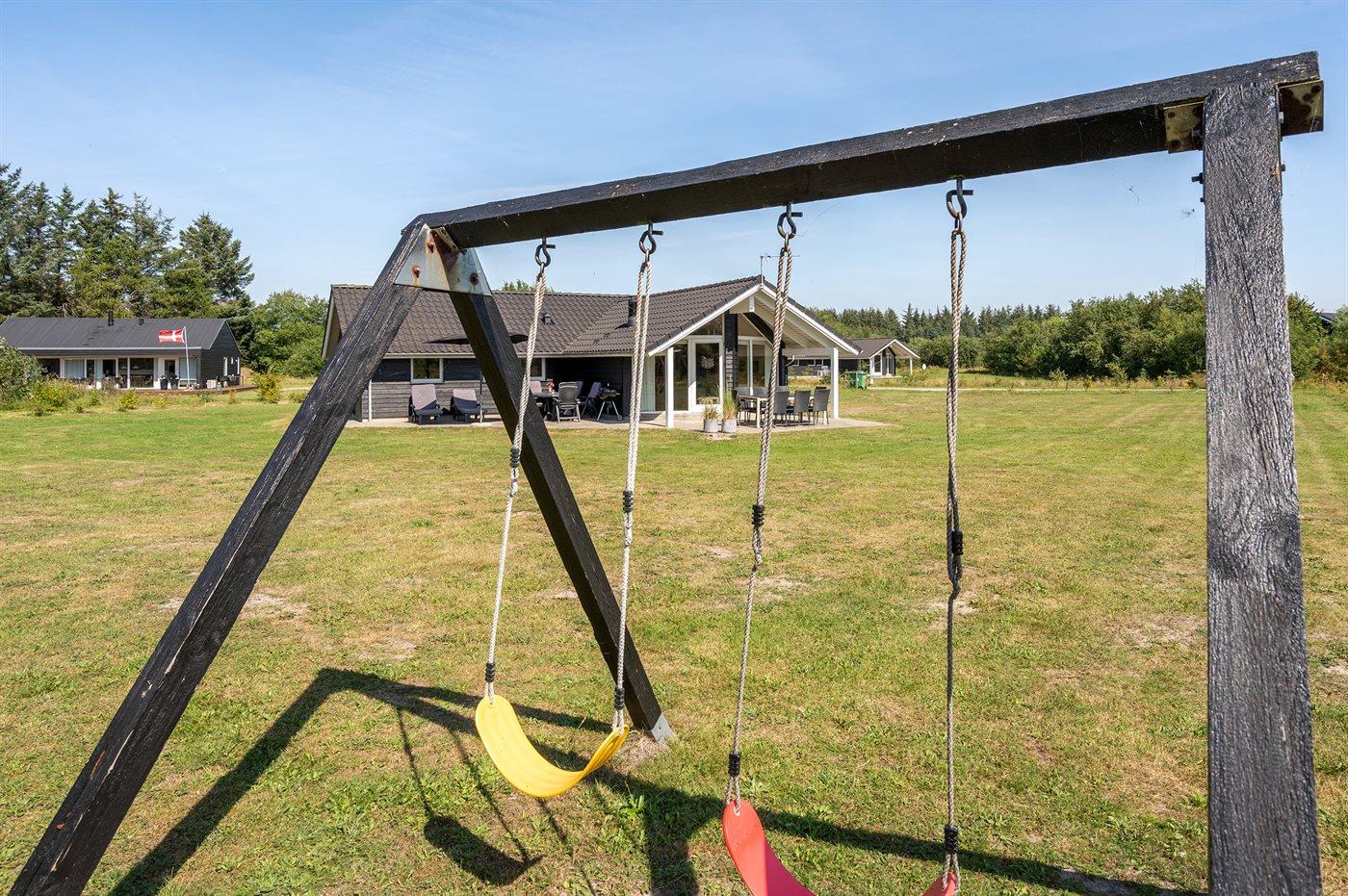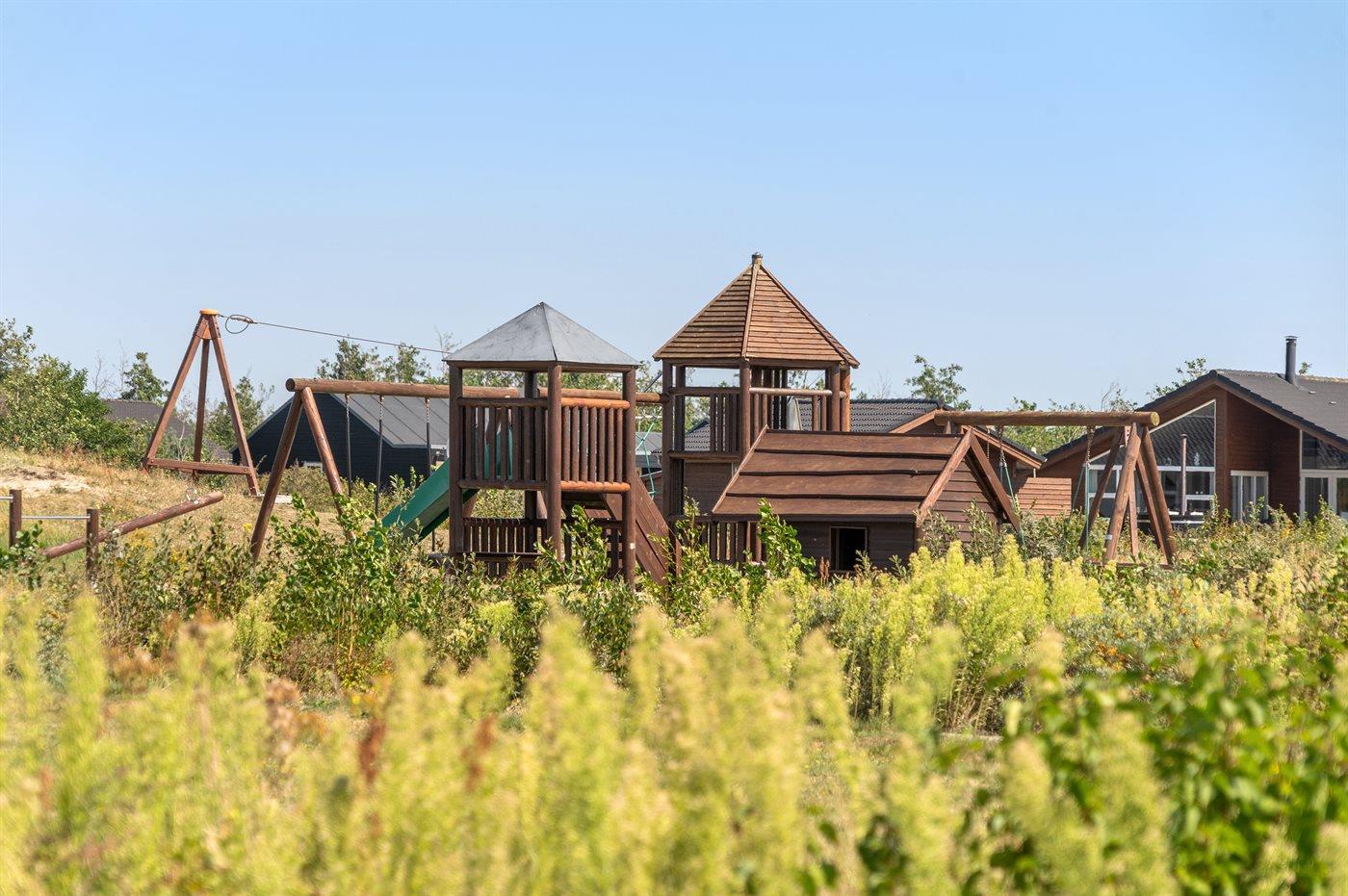 Flot sommerhus med spa, sauna og stor terrasse nær natur og legeplads.