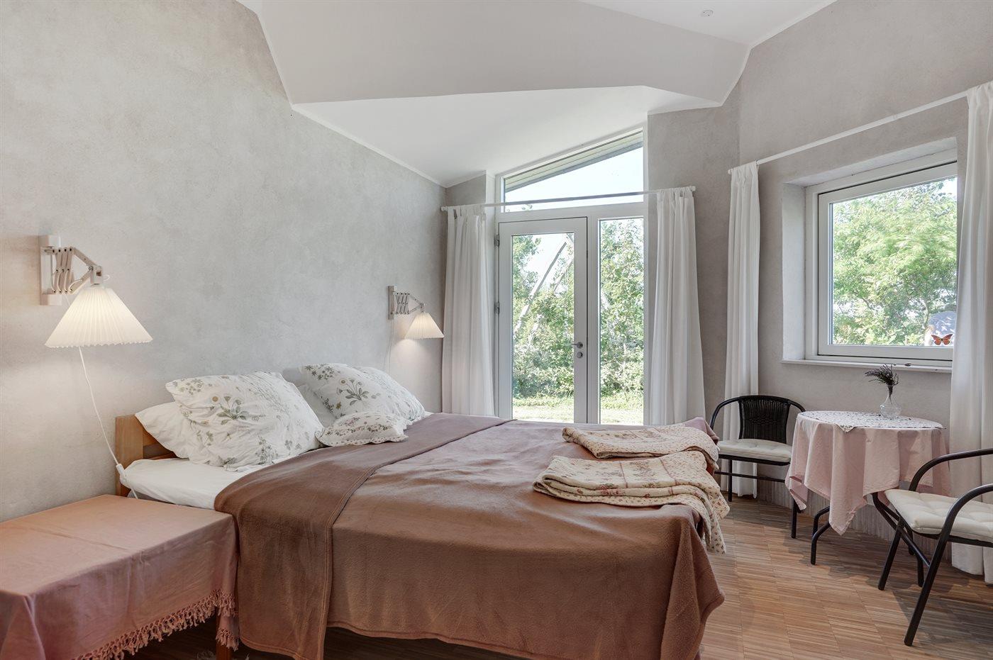 Der er i alt 3 soveværelser. Sovepladserne fordeler sig på: 4 sovepladser i dobbeltsenge. 2 sovepladser i enkeltsenge.