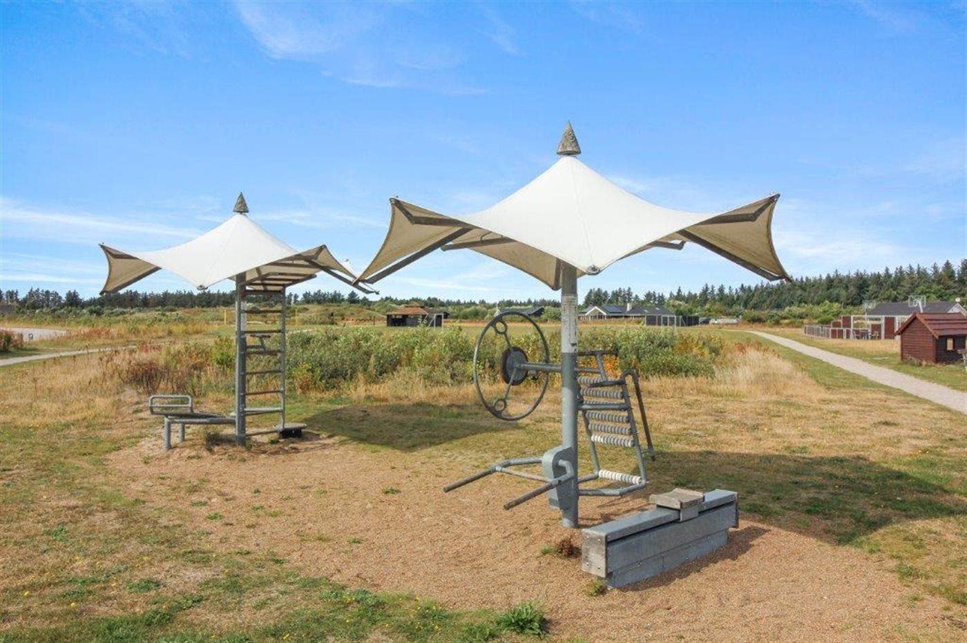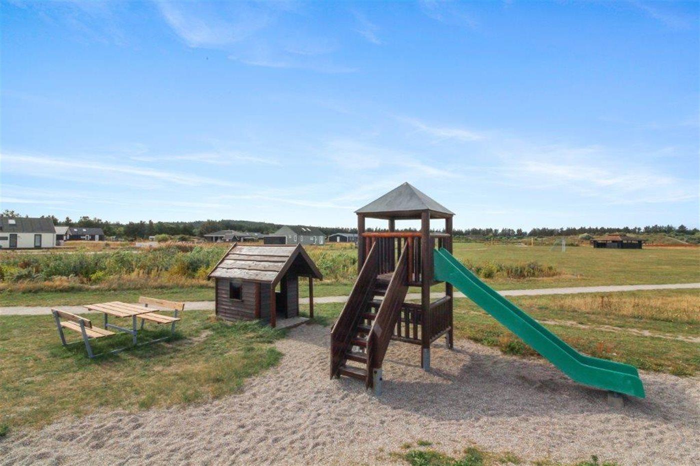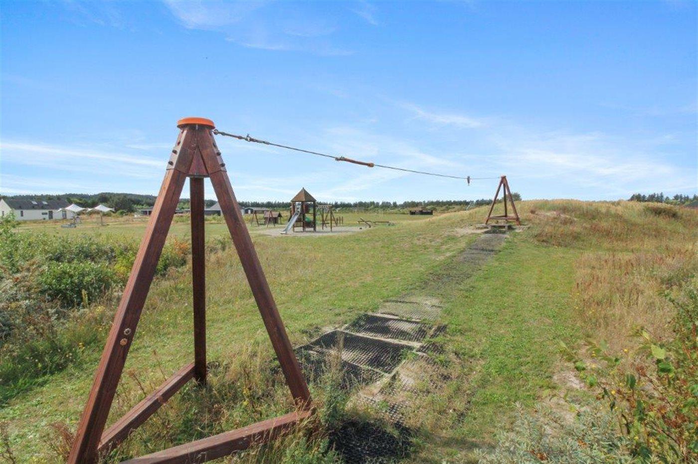 Ferieboligen er beliggende på en 2357 m² stor naturgrund. Der er 3750 m til havet. Nærmeste forretning er beliggende i en afstand af 2000 m. Til ferieboligen hører 80 m² terrasseareal. Desuden er der 12 m² overdækket terrasse. Gynge. Parkering ved ferieboligen.