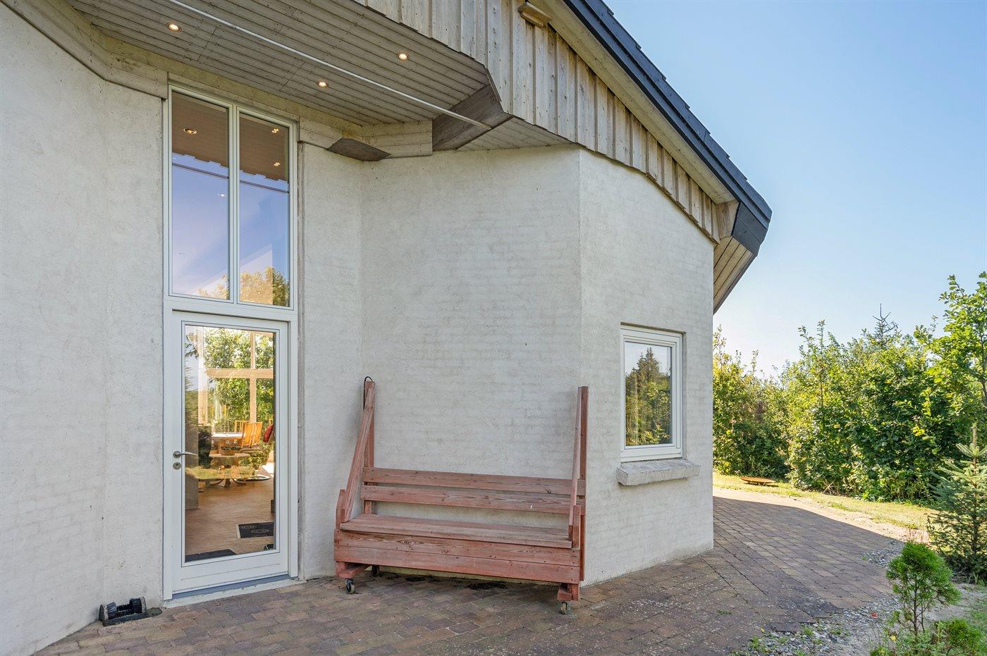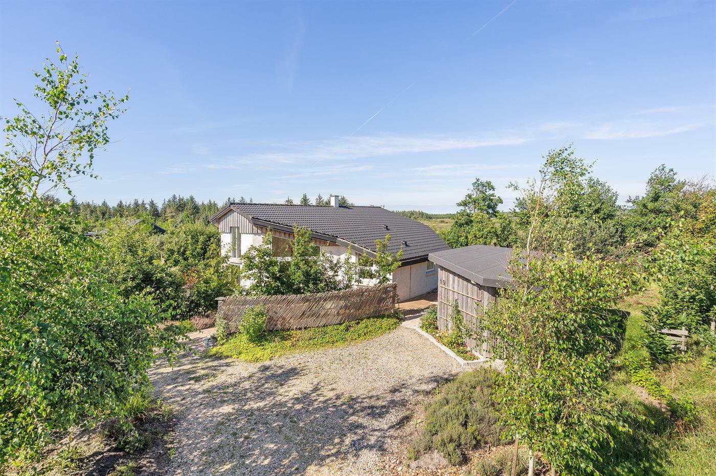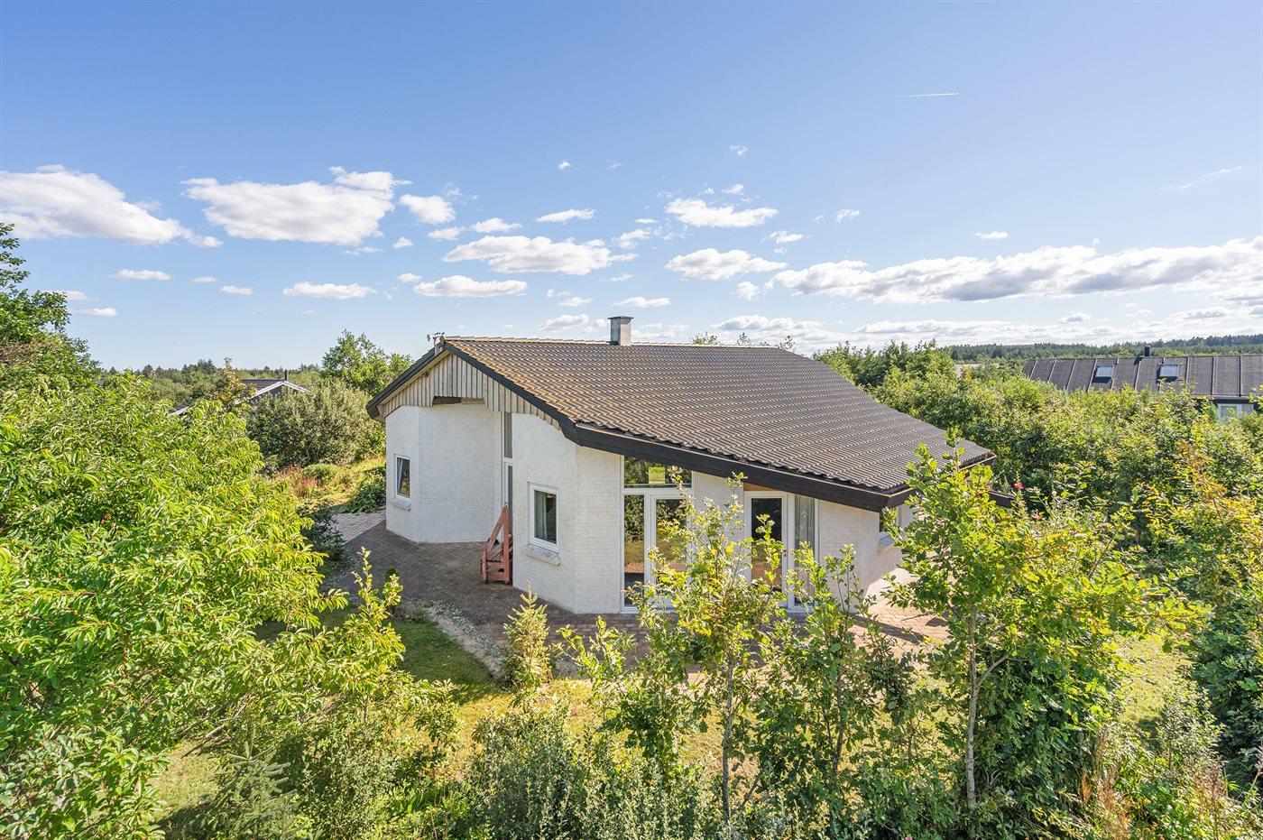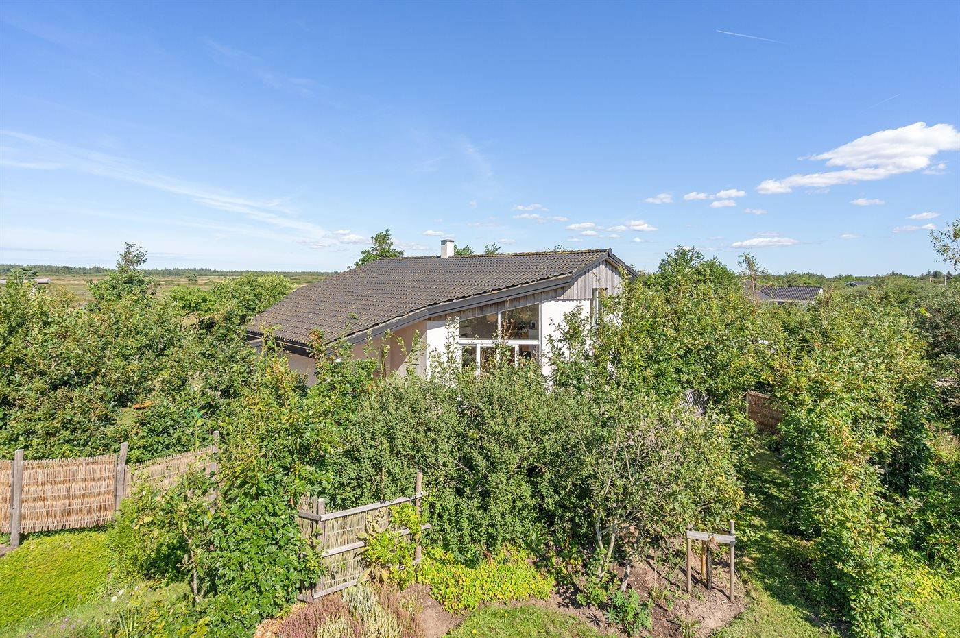 Unikt og spændende sommerhus med god plads beliggende i udkanten af et roligt sommerhusområde, for enden af lukket sidevej, i et naturskønt område, tæt på fredet, uspoleret og kuperet skovområde med klithede, vandrestier og et rigt dyreliv. På fællesareal findes bl.a. legeplads og diverse motionsredskaber. Huset er højisoleret med en lys og venlig indretning med store sydvendte vinduer i køkken-alrummet, som giver en god og behagelig varme året rundt. Endvidere opvarmes de øvrige rum i huset med el-spejle med indbygget varmelegemer.