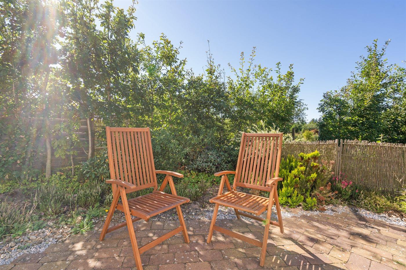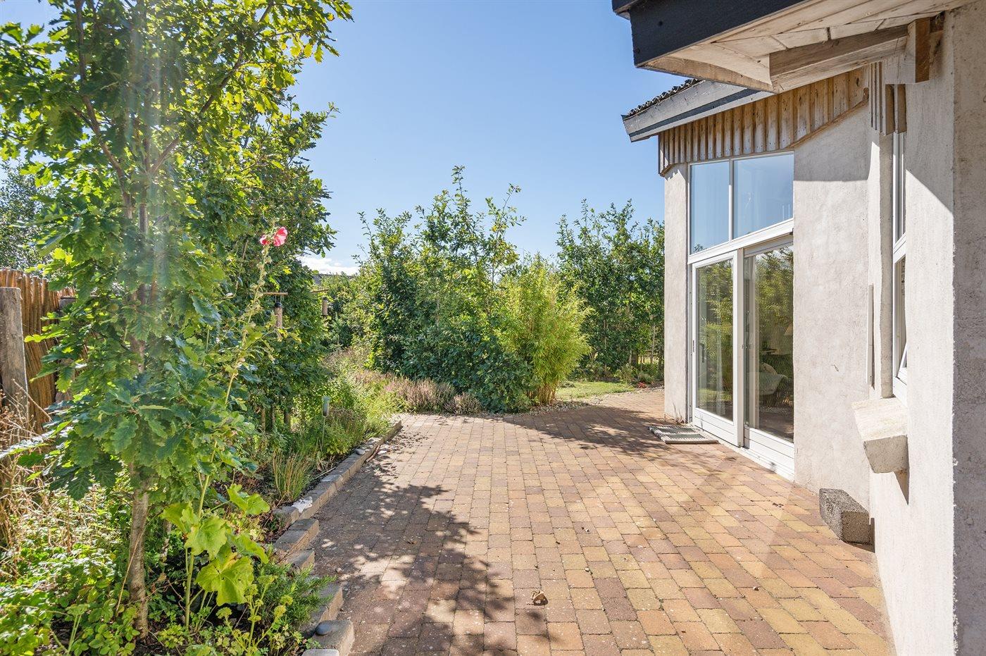 Unikt sommerhus i naturskønt område nær skov og klithede med stor terrasse og moderne faciliteter.