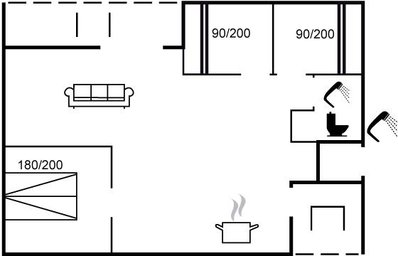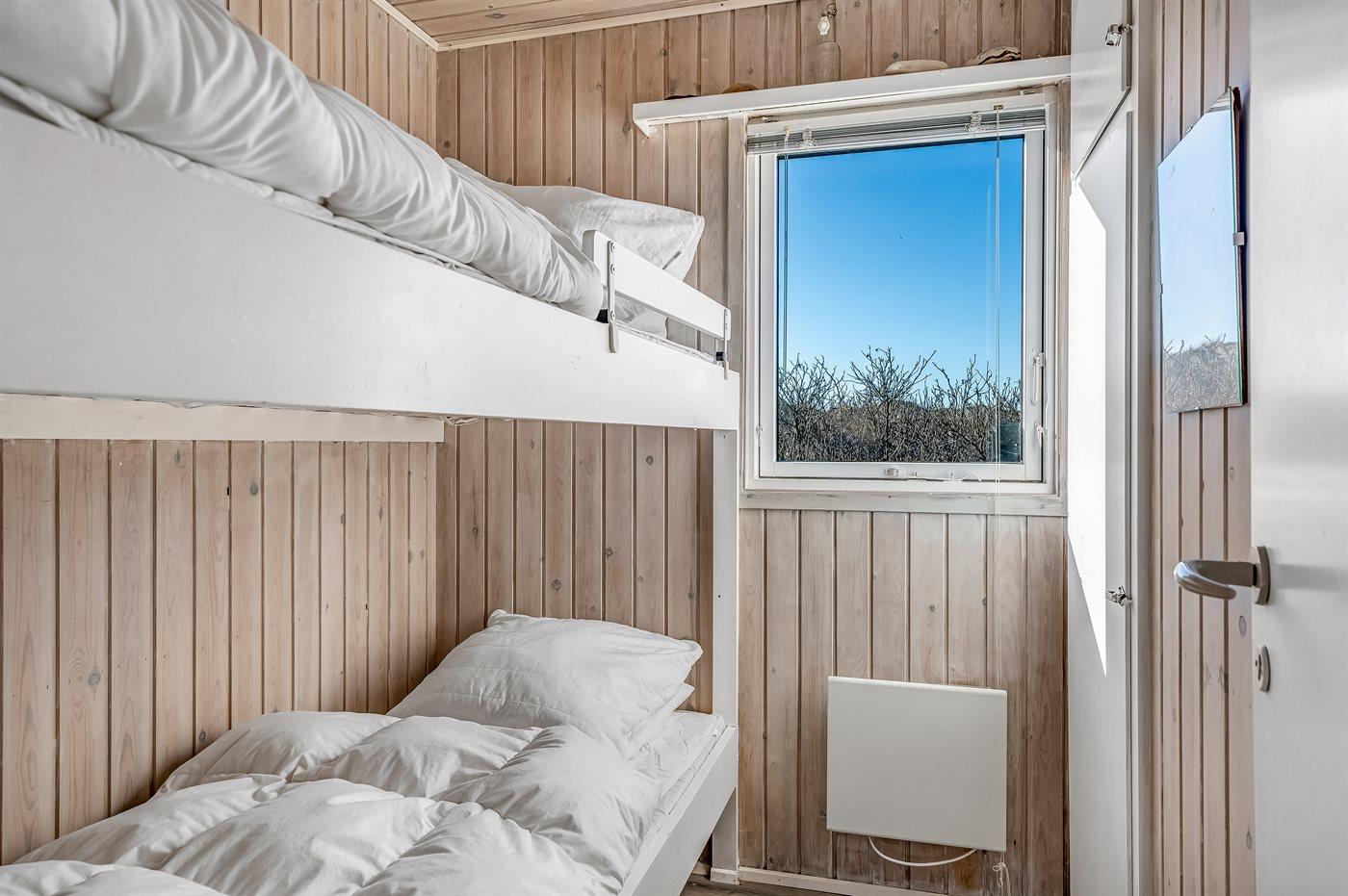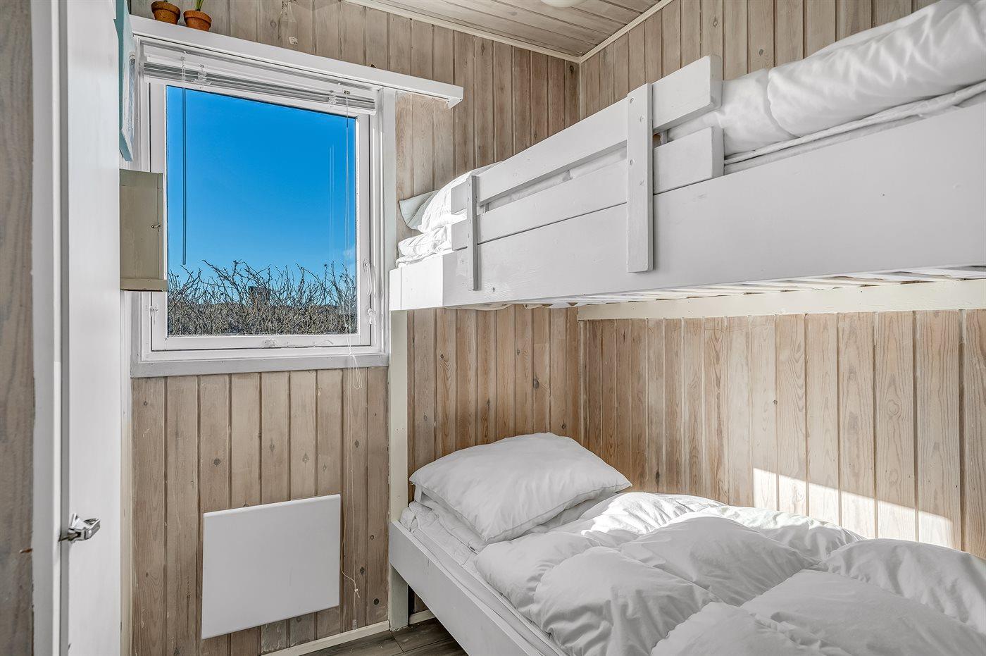 Der er i alt 3 soveværelser. Sovepladserne fordeler sig på: 2 sovepladser i dobbeltseng. 4 sovepladser i køjesenge.