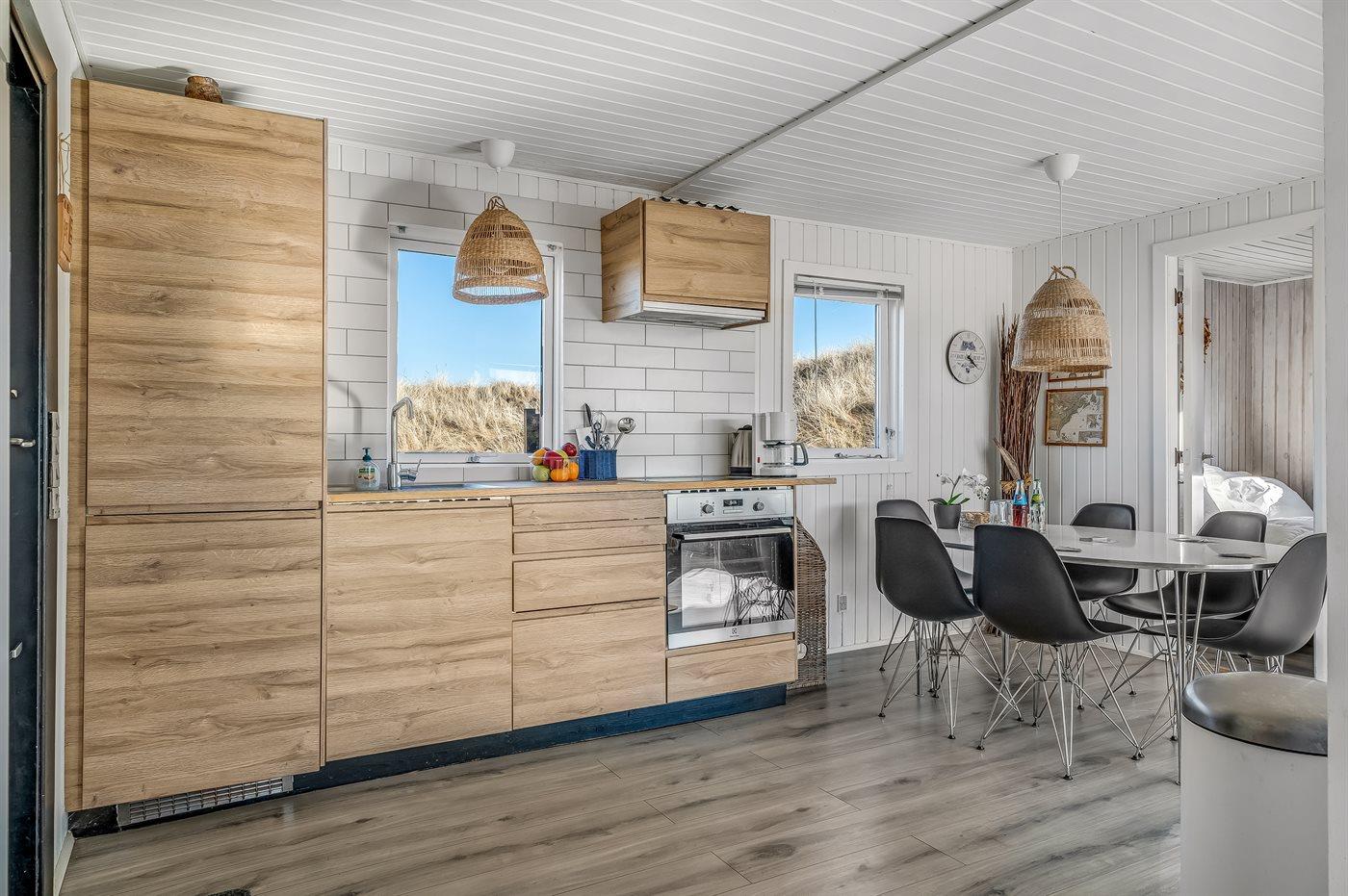 Køkkenet er udstyret med 1 køleskab. Der er 4 induktionskogeplader, varmluftovn, mikrobølgeovn.