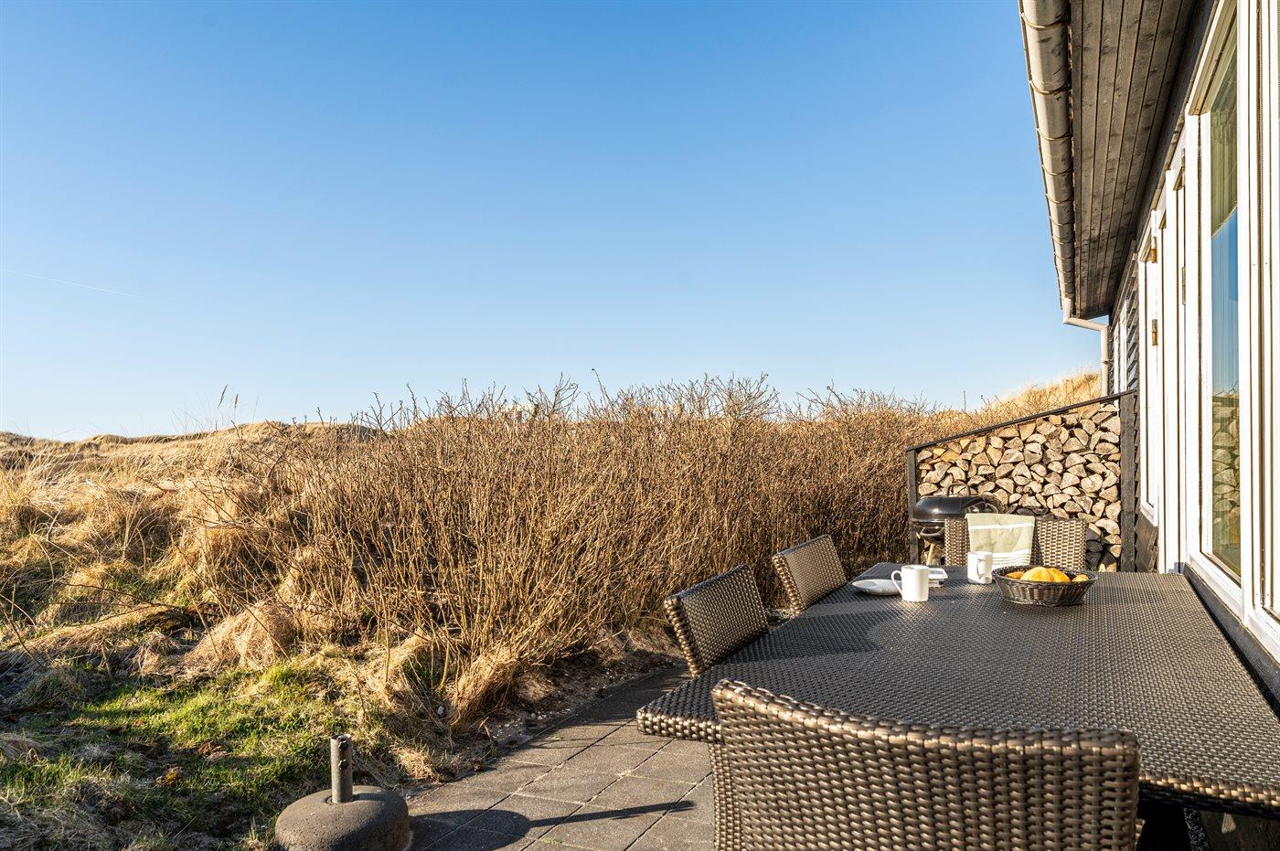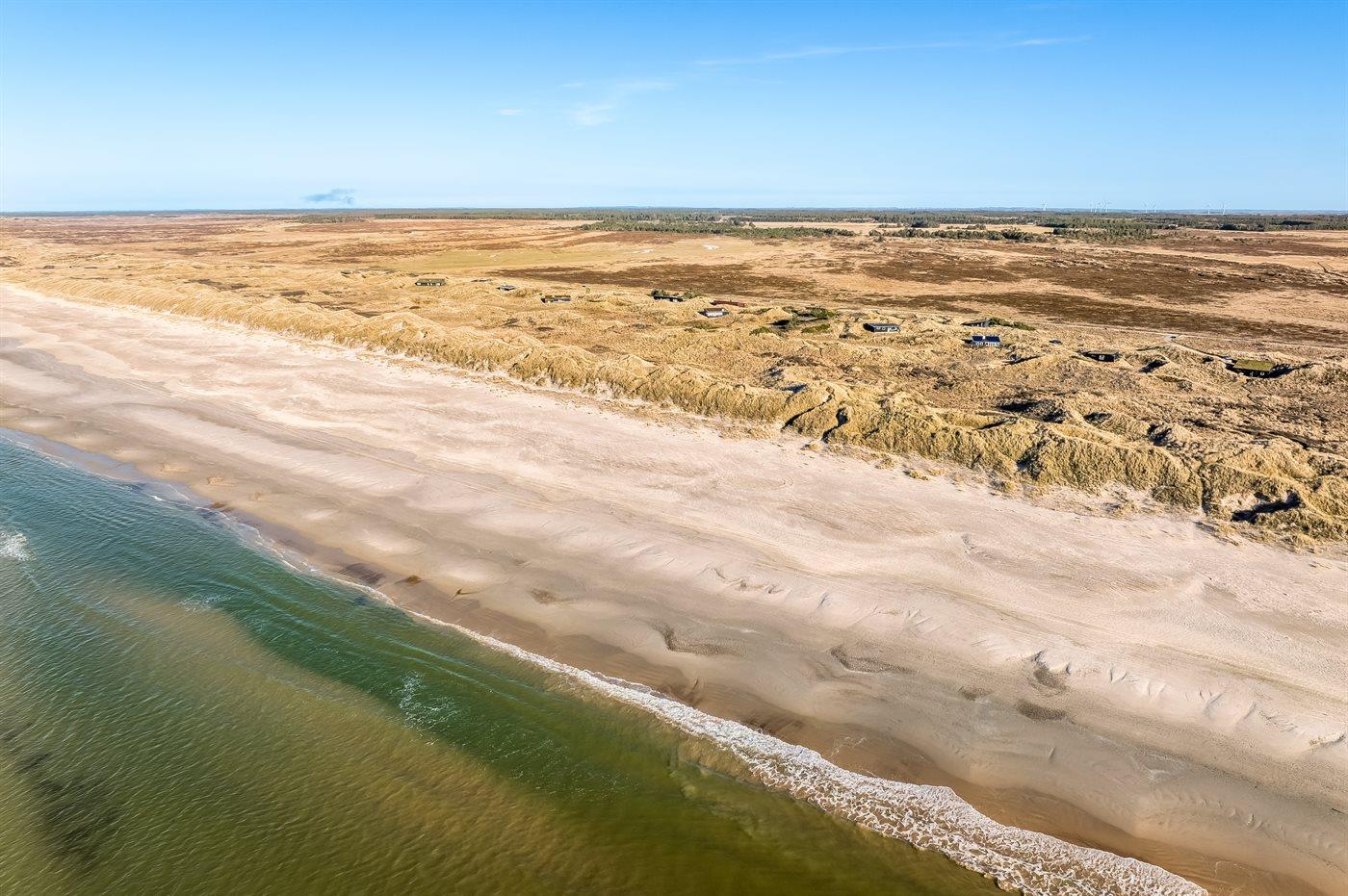 Ferieboligen er beliggende på en 3995 m² stor klitgrund. Der er 200 m til havet. Nærmeste forretning er beliggende i en afstand af 5000 m. Til ferieboligen hører åbent terrasseareal. Udendørs bruser. Grill til rådighed. Der er installeret stik til opladning af elbil. CEE stik. Parkering ved ferieboligen.