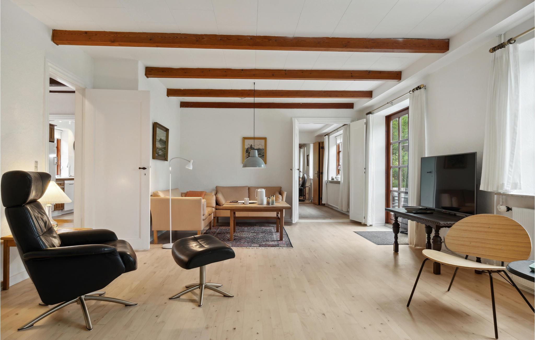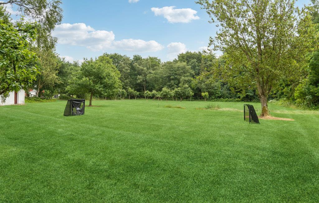 Idyllisk beliggende i udkanten af skoven venter dette dejlige feriehus. De markante loftsbjælker i de hyggeligt indrettede værelser går godt i spænd med den hvide farve, og sammen med de smagfulde møbler danner de en varm atmosfære, der indbyder til familietid. Her er mange hyggekroge og en brændeovn, der også skaber hygge. Sæt jer godt til rette og nyd sjove brætspilskonkurrencer, filmaftener og god hjemmelavet mad. Er det mindre godt vejr, kan børnene spille bordfodbold. Nyd skønne timer med familieaktiviteter i den store have, hvor der også er en sø, eller slap af med en kop kaffe på terrassen, mens børnene hopper på trampolinen. Rund dagen af med et lækkert måltid fra grillen.