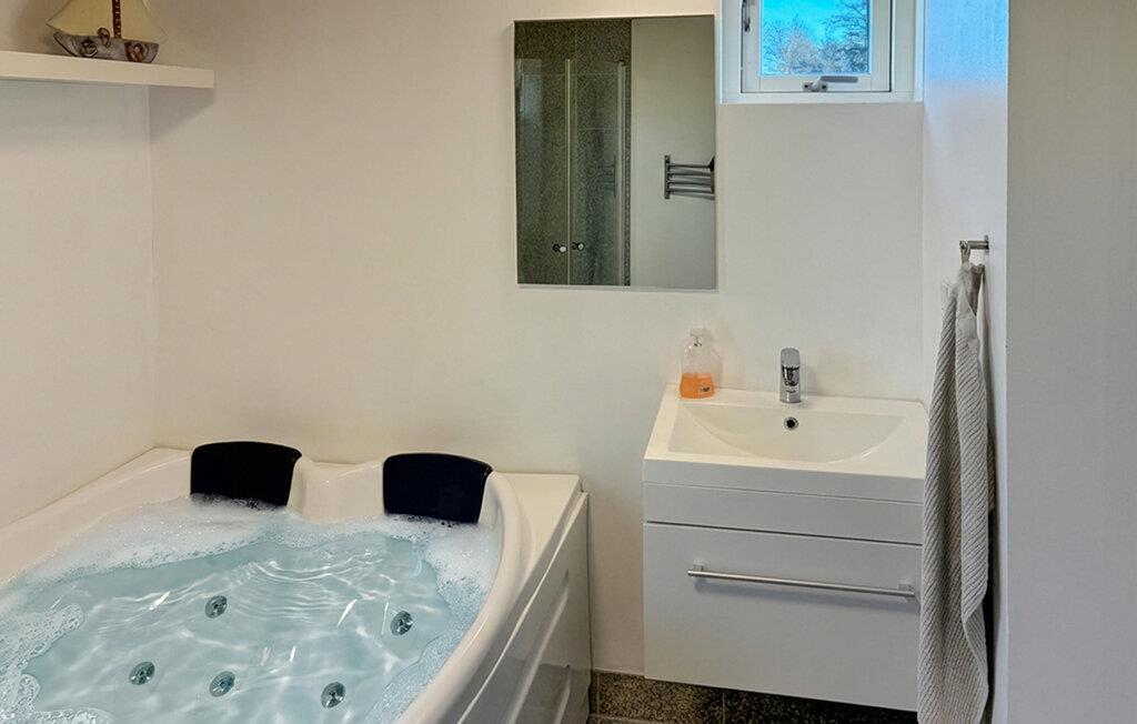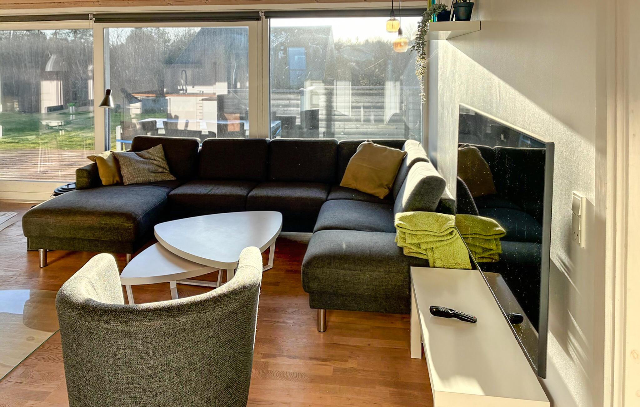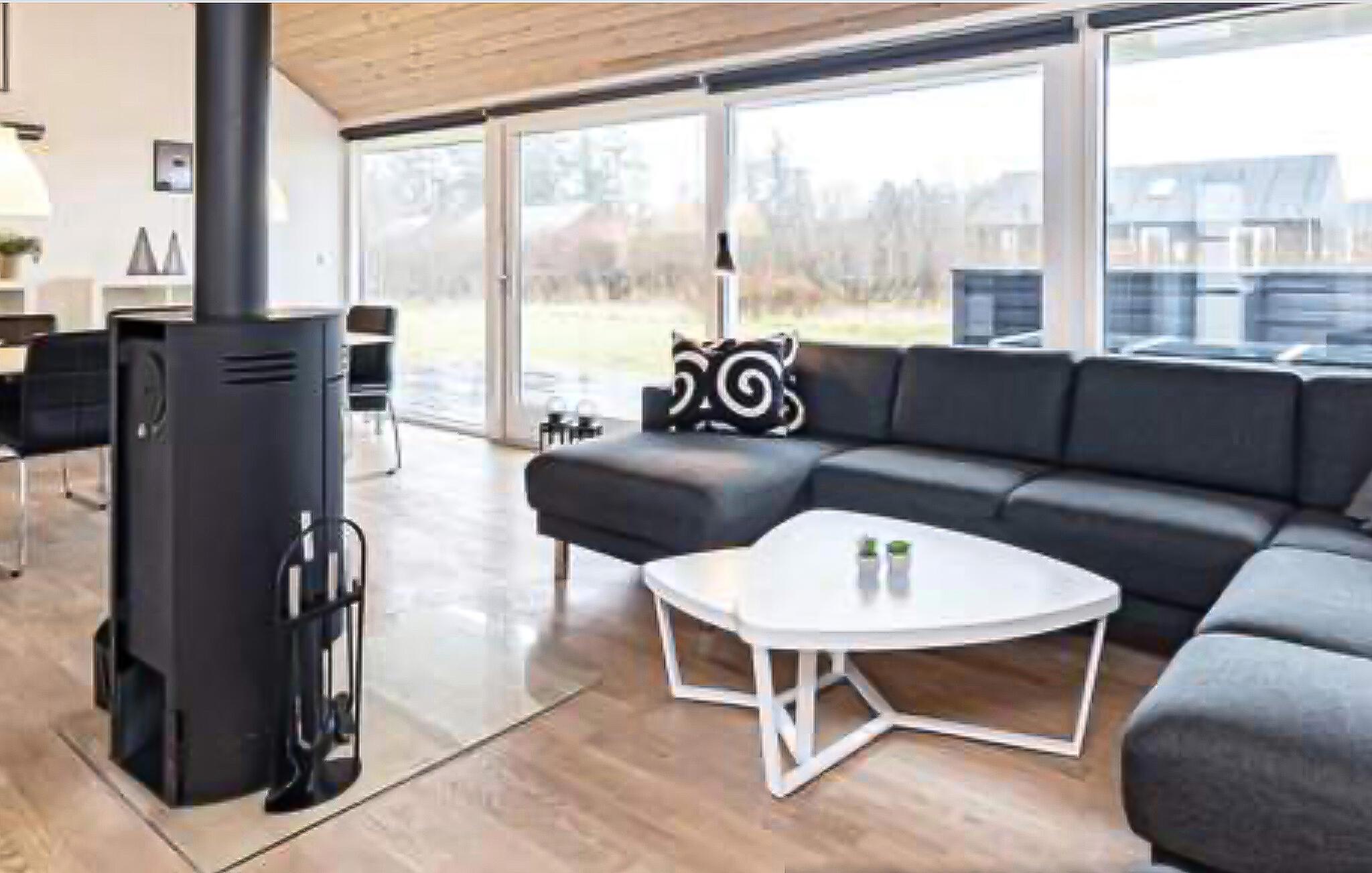 Glæd jer til dette feriehus, der tilbyder de perfekte rammer til en ferie, hvor I rigtig kan lade batterierne op. Begynd dagene med fælles morgenmad i det åbne opholds- og spiseområde, som har et behageligt lysindfald fra de store brede vinduespartier. Find jer godt til rette i de bløde møbler, lyt til den beroligende lyd fra ilden i brændeovnen og mærk, hvordan hverdagen hurtigt træder i baggrunden. Brug det åbne køkken til hyggelige madlavningsseancer, hvor I giver jer god tid til at have børnene med. Hvis I trænger til at være ekstra gode ved jer selv, kan I læne jer velfortjent tilbage i spabadet efter dagens eventyr.