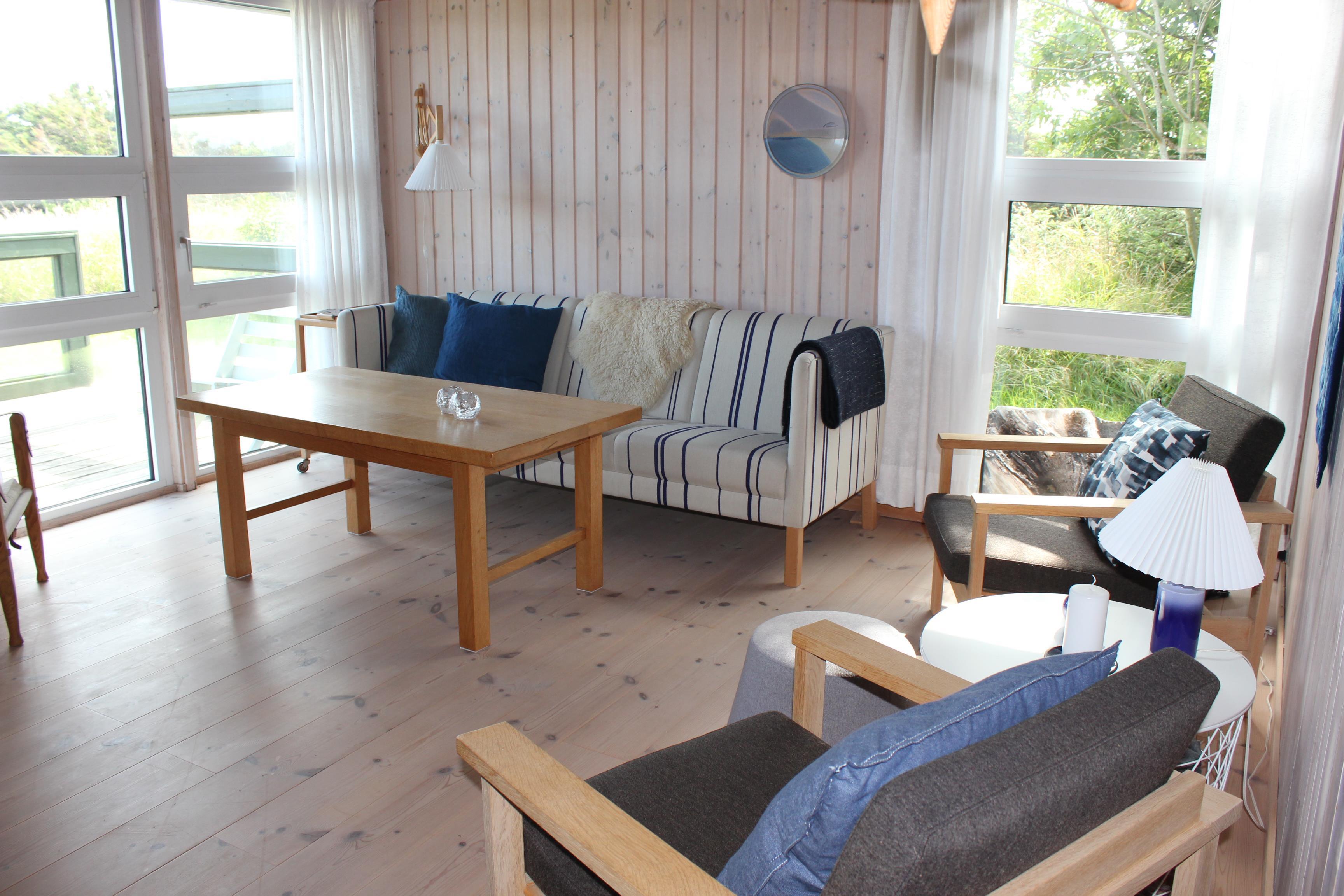 Hyggeligt sommerhus i første række med direkte adgang til stranden. Huset er møbleret i moderne skandinavisk stil med plads til hygge og afslapning. Udenfor er der mulighed for at nyde både morgen-, eftermiddags- og aftensolen på den delvist overdækkede terrasse. Køkkenet er i direkte forbindelse med den lyse opholdsstue. Her er TV, hyggeligt sofahjørne og en rummelig spisekrog med plads til 6 personer. Huset har i alt tre soveværelser: et værelse med dobbeltseng og to værelser med køjesenge. Køjeseng i begge værelser er 120 x 200 i nederste køje og øverste 70 x 200.