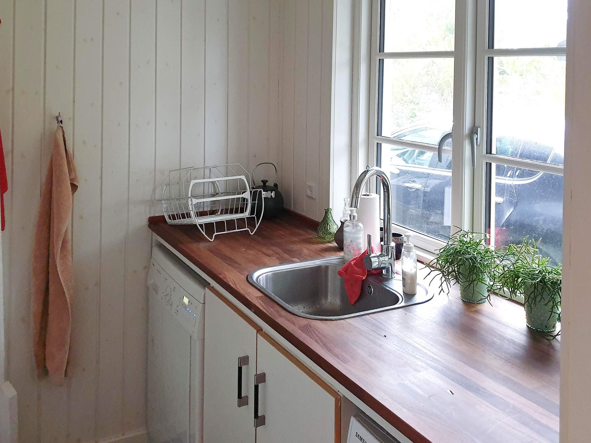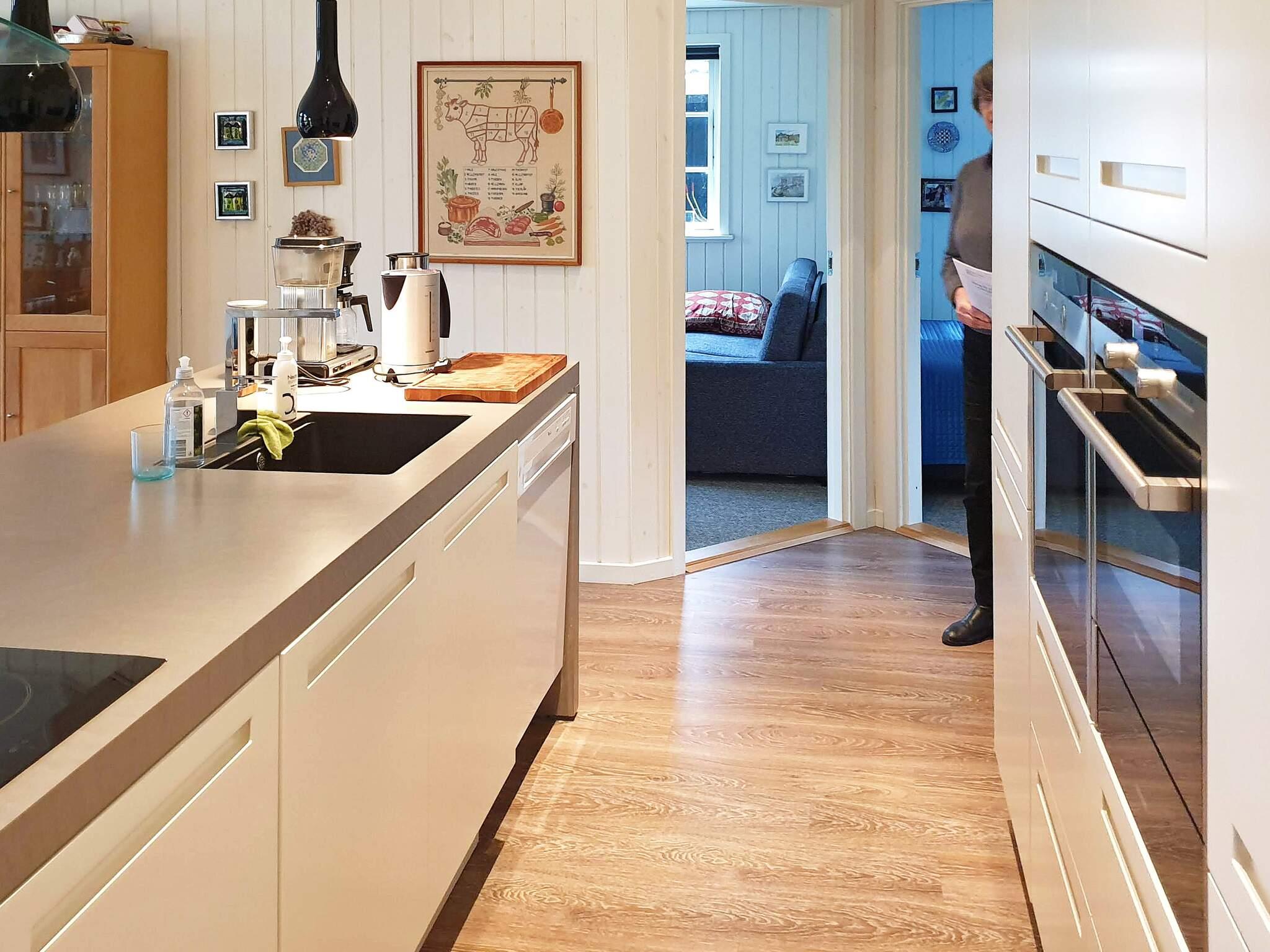 Sommerhuset er lyst og indbydende og er praktisk indrettet med kombineret stue/køkken. Stuen har moderne møbler, radio, gratis højhastigheds-internet samt fladskærms-tv med danske tv-kanaler, herunder TV2, og diverse internationale kanaler. Køkkenet har keramisk kogeplade, emhætte, separat ovn med grill, indbygget mikroovn/kombiovn, køleskab, og separat fryser med en kapacitet på 200 liter, kaffemaskine, samt opvaskemaskine.