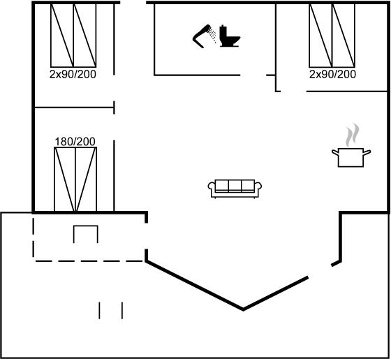Der er i alt 3 soveværelser. Sovepladserne fordeler sig på: 6 sovepladser i dobbeltsenge. Derudover er der 1 stk. barneseng.