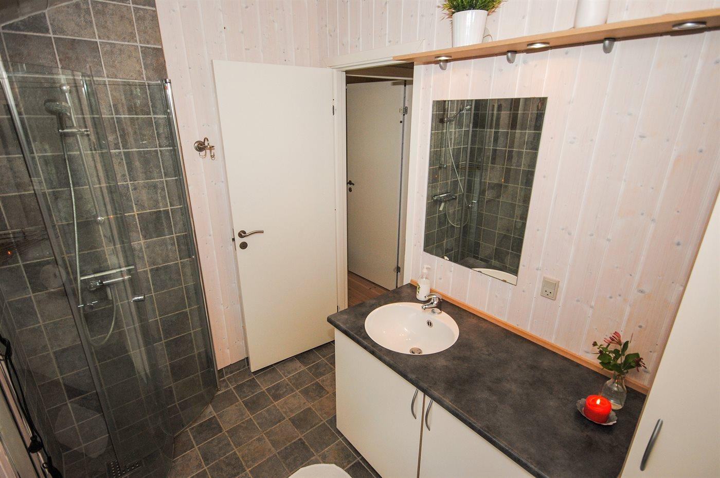 Der er 1 badeværelse med bruseniche og 1 toilet.. Der er gulvvarme på 1 badeværelse.