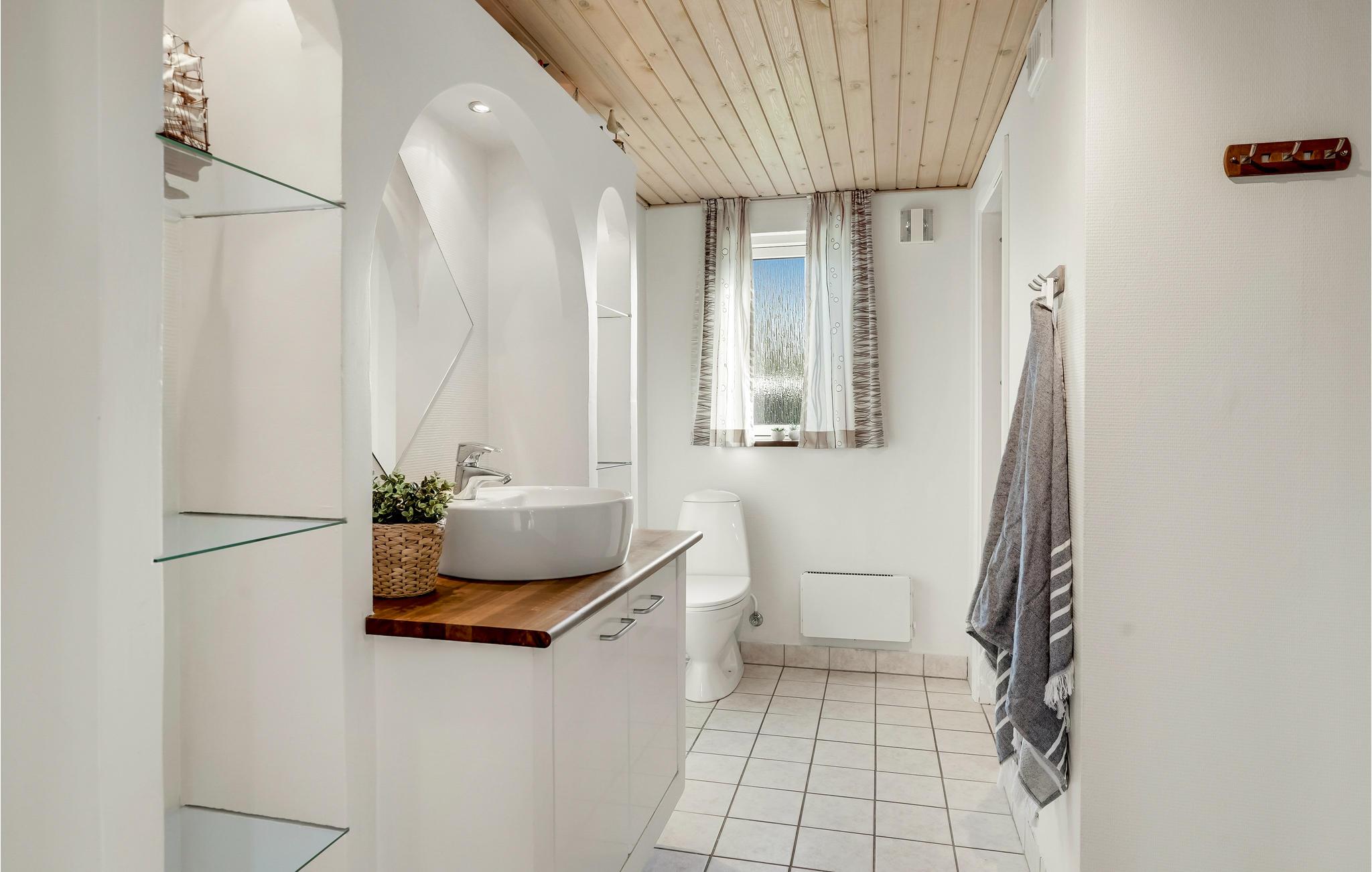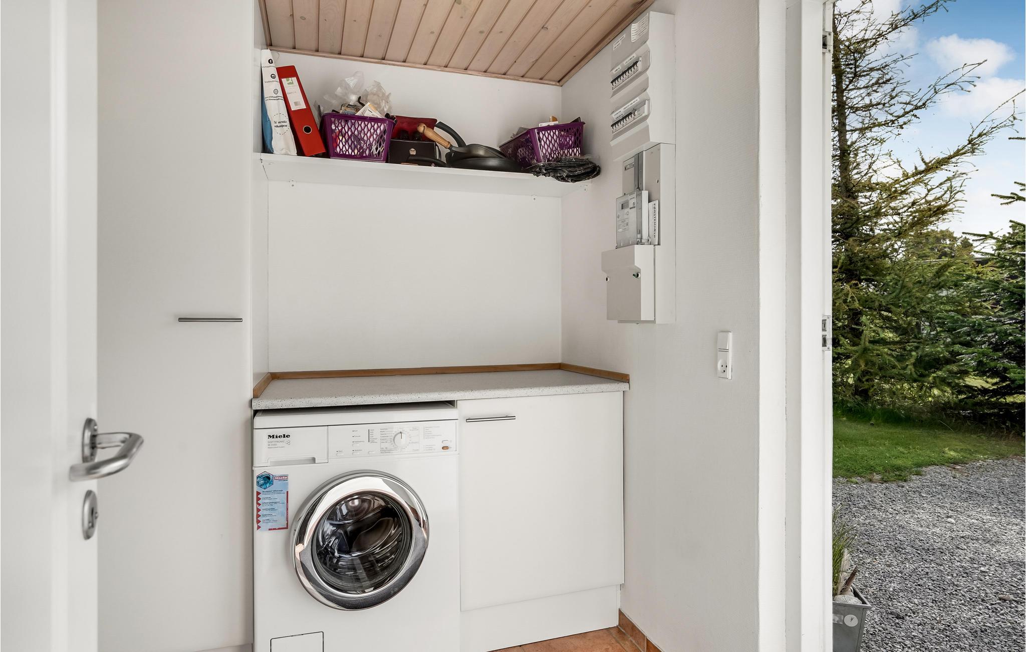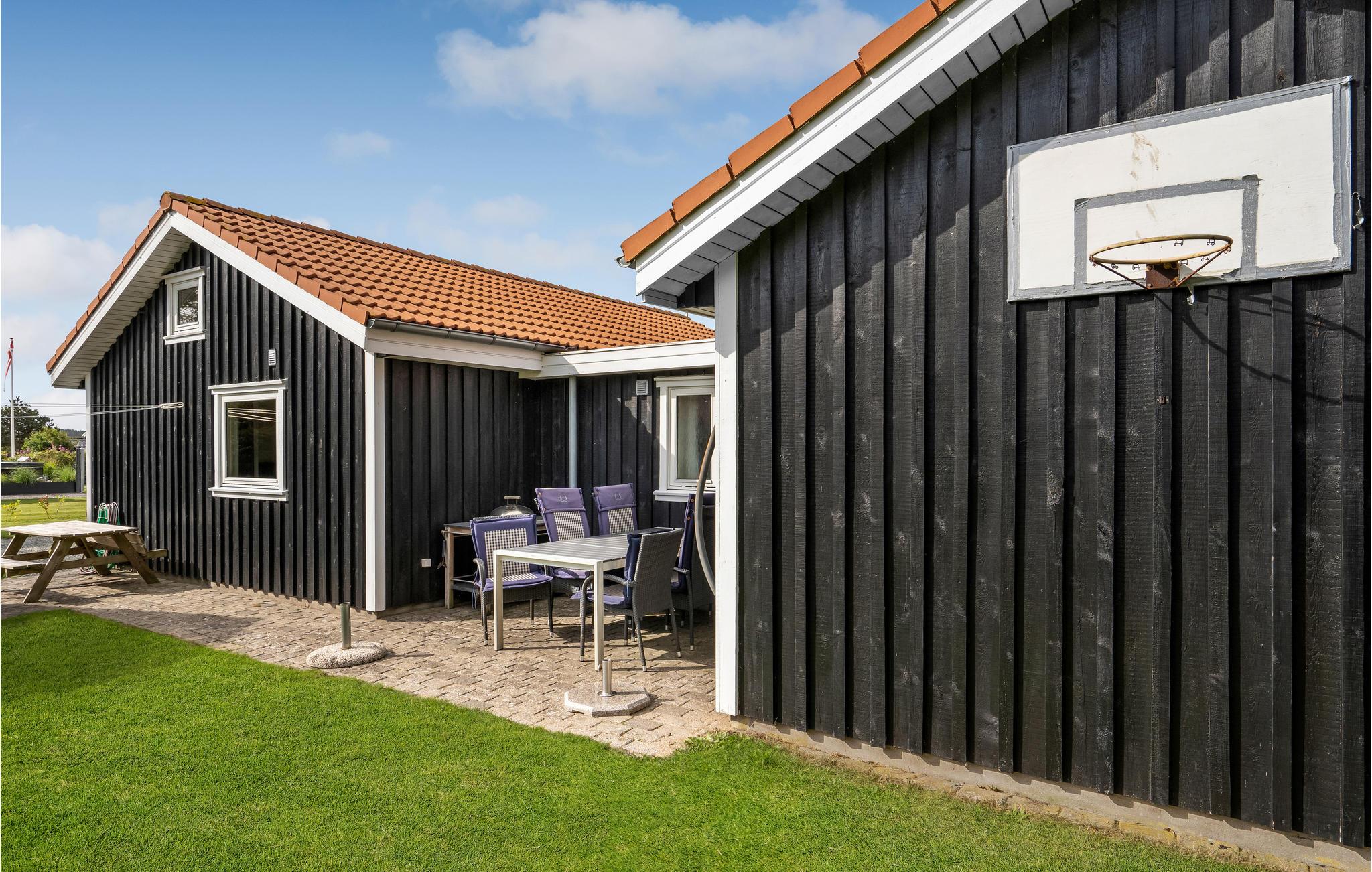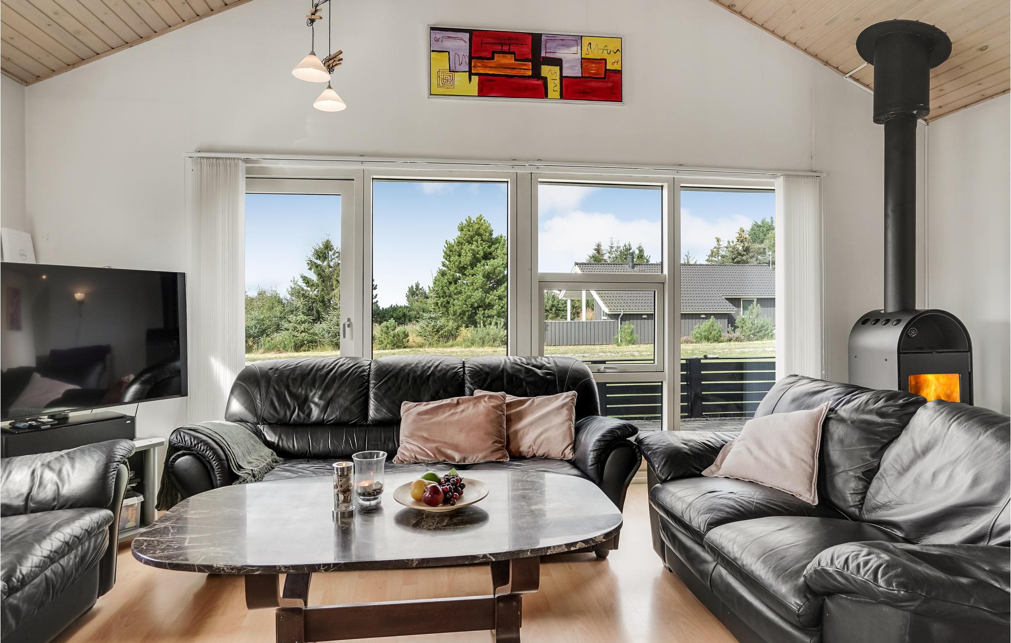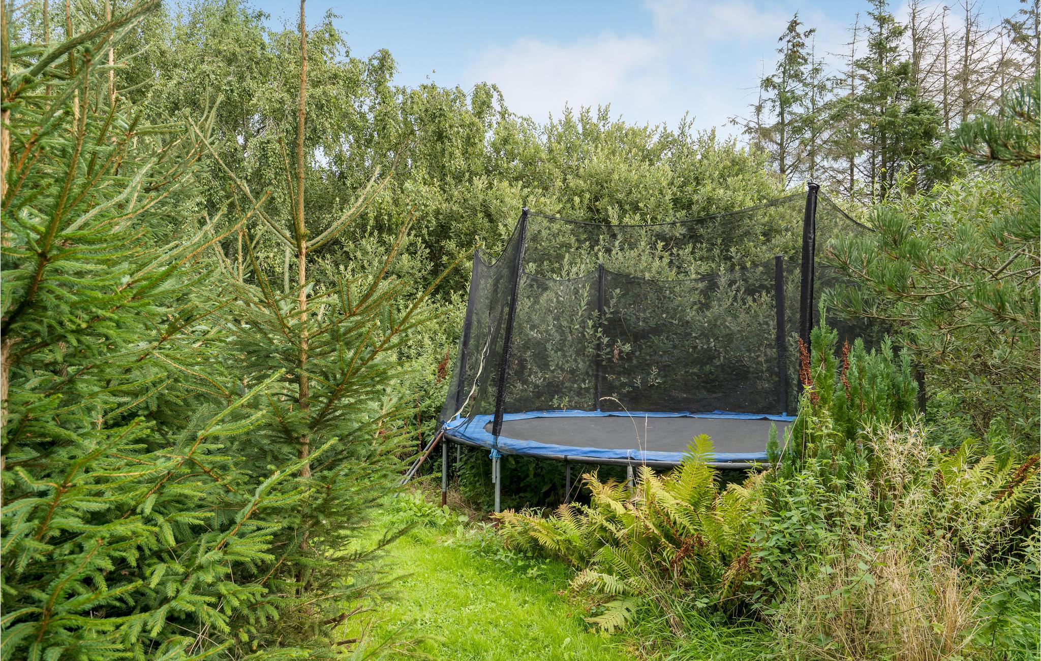 Oplev en afslappende ferie i Trend sammen med hele familien. Det smukke feriehus er komfortabelt udstyret og indbyder til hyggeligt samvær i den store stue. Lav mad sammen i det rummelige køkken, hvor alle kan give en hånd med, så I kan lave lækre måltider mens I hygger jer sammen. Børnene vil helt sikkert blive tiltrukket af haven, for her finder I et legeparadis for de yngste. En skibslegeplads med sandkasse, gynger og trampolin sørger for masser af sjov. I kan samles ved bålpladsen om aftenen og grille snobrød eller skumfiduser. Mens børnene leger i haven, kan de voksne slappe af og få gang i kredsløbet i den private sauna.
