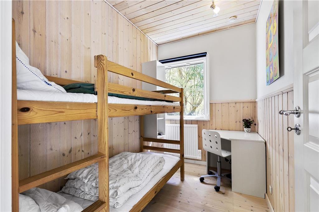 Dette hyggelige og velbyggede sommerhus tilbyder fred og ro tæt på skov, strand og by, og er ideelt for storfamilier eller to familier, der vil nyde ferien sammen.