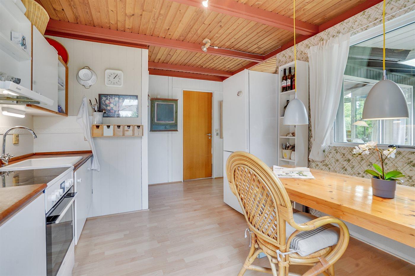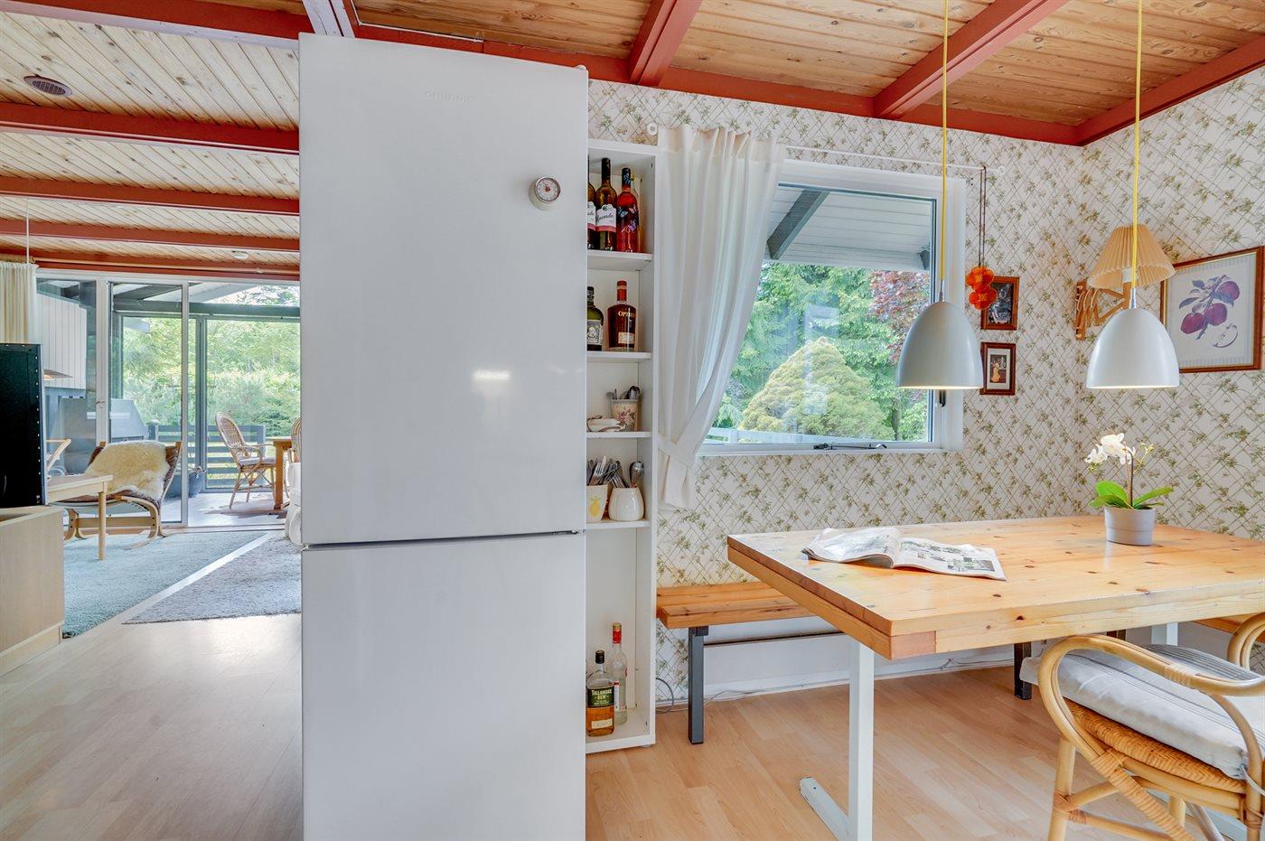 Køkkenet er udstyret med 1 køleskab. Der er 4 keramiske kogeplader, varmluftovn, mikrobølgeovn.