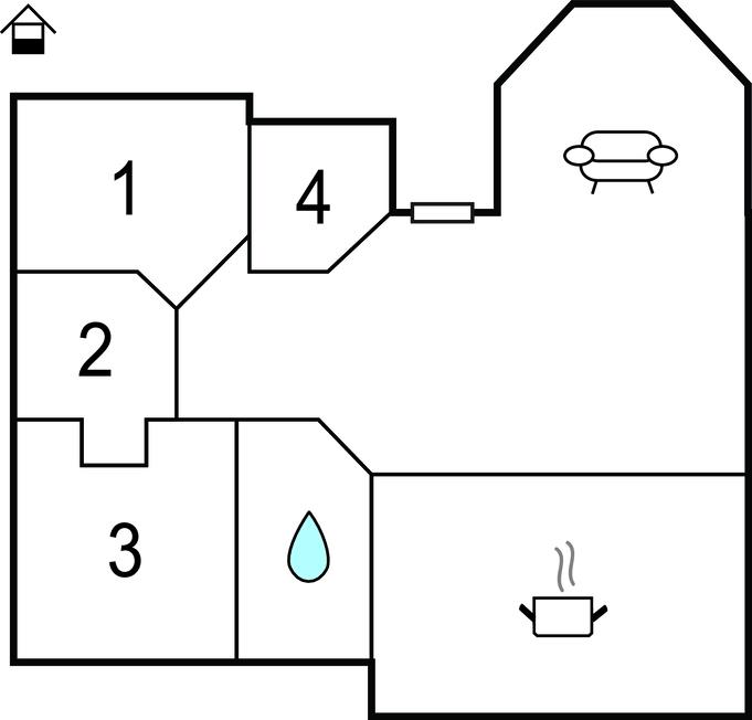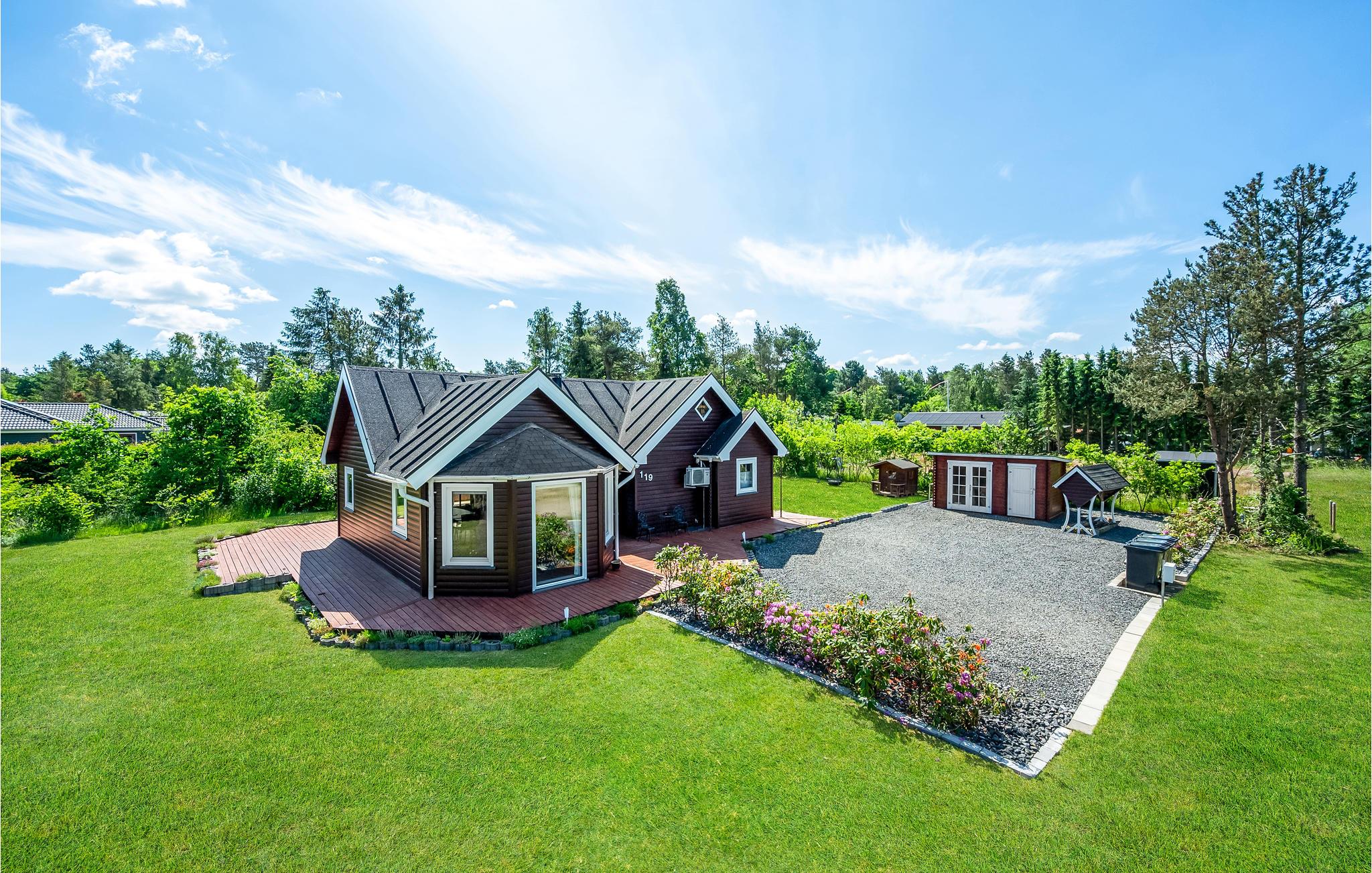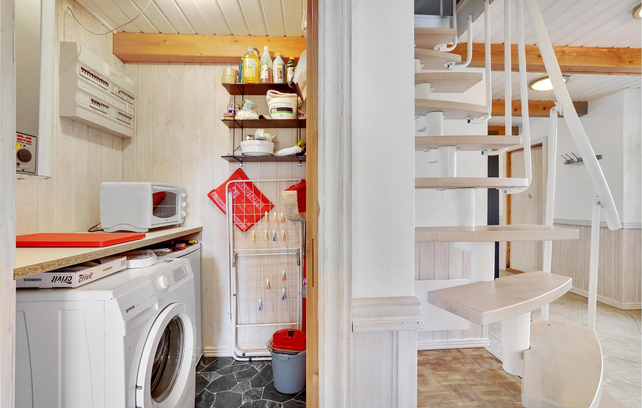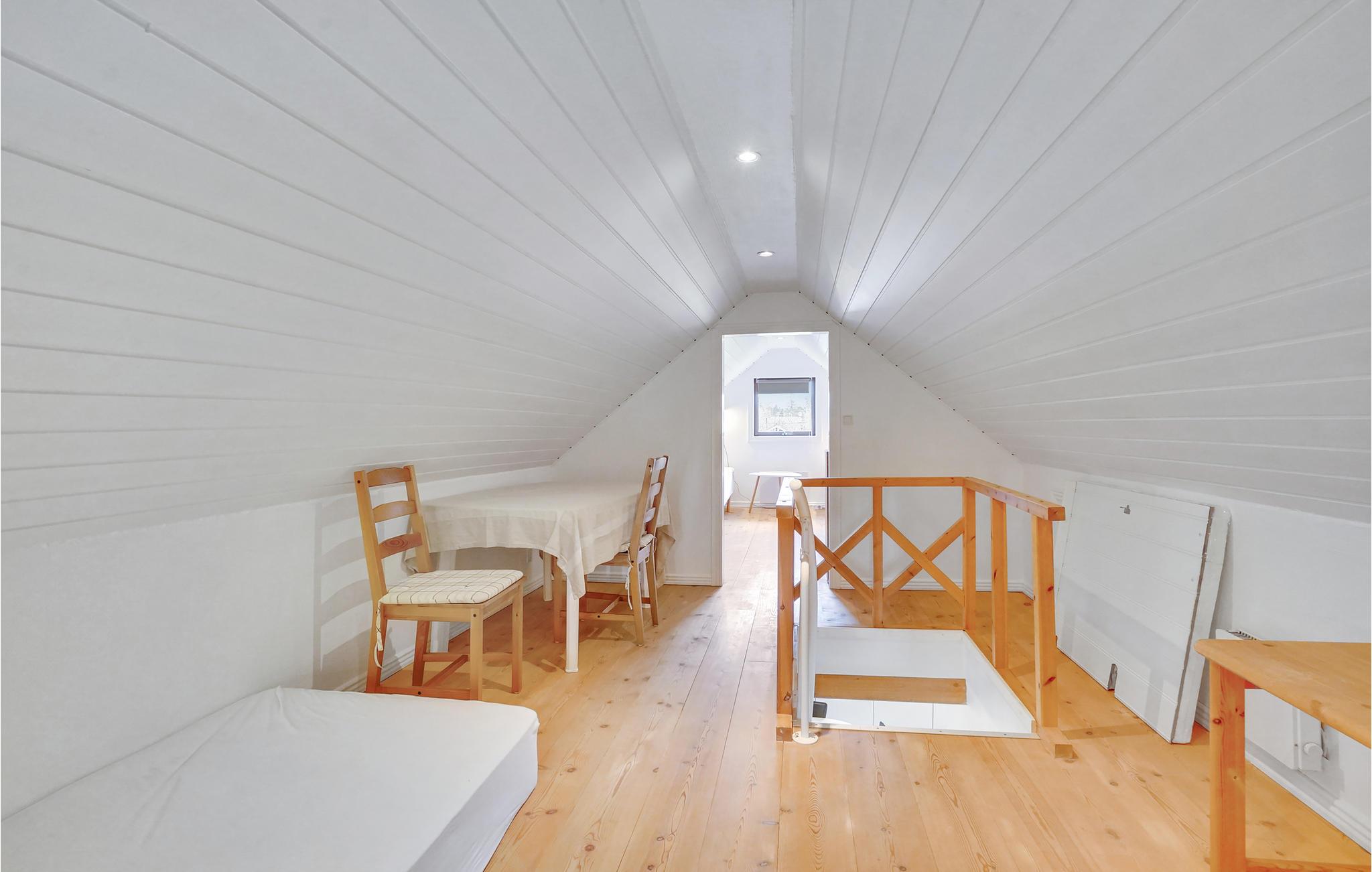 Et arkitektonisk spændende feriehus, som tilbyder et ideelt sted til både afslapning og friluftsaktiviteter. Huset er lyst og hyggeligt indrettet, og det fritlagte bjælkeloft er med til at skabe en behagelig atmosfære. Hjertet af huset er det store åbne opholdsrum med stue og køkken. Her finder I masser af plads til hyggelige stunder ved spisebordet, i rundt om sofabordet eller foran brændeovnen på kolde vinteraftener. Børnene vil sikkert sætte pris på overetagen, som har et soveværelse med skråvægge, plads til at lege og hyggelig stemning oppe under taget.