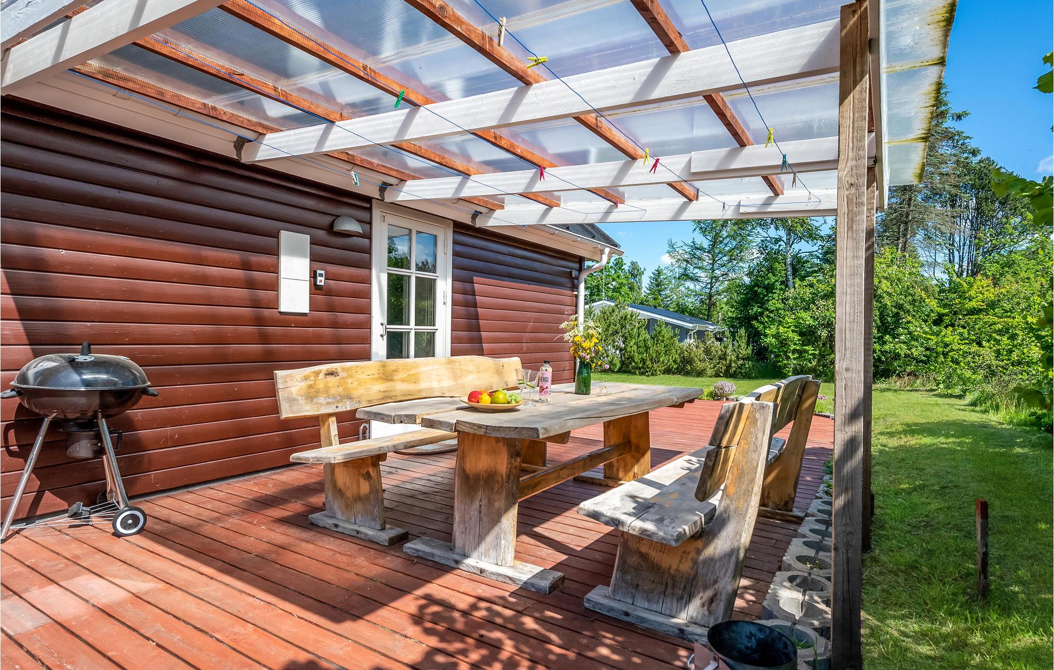 Fra stuen kan I træde ud på den åbne træterrasse, hvor I kan grille, nyde roen eller slappe af, mens børnene leger udenfor. I haven finder de garanteret plads nok til at kunne lege og boltre sig i det fri.