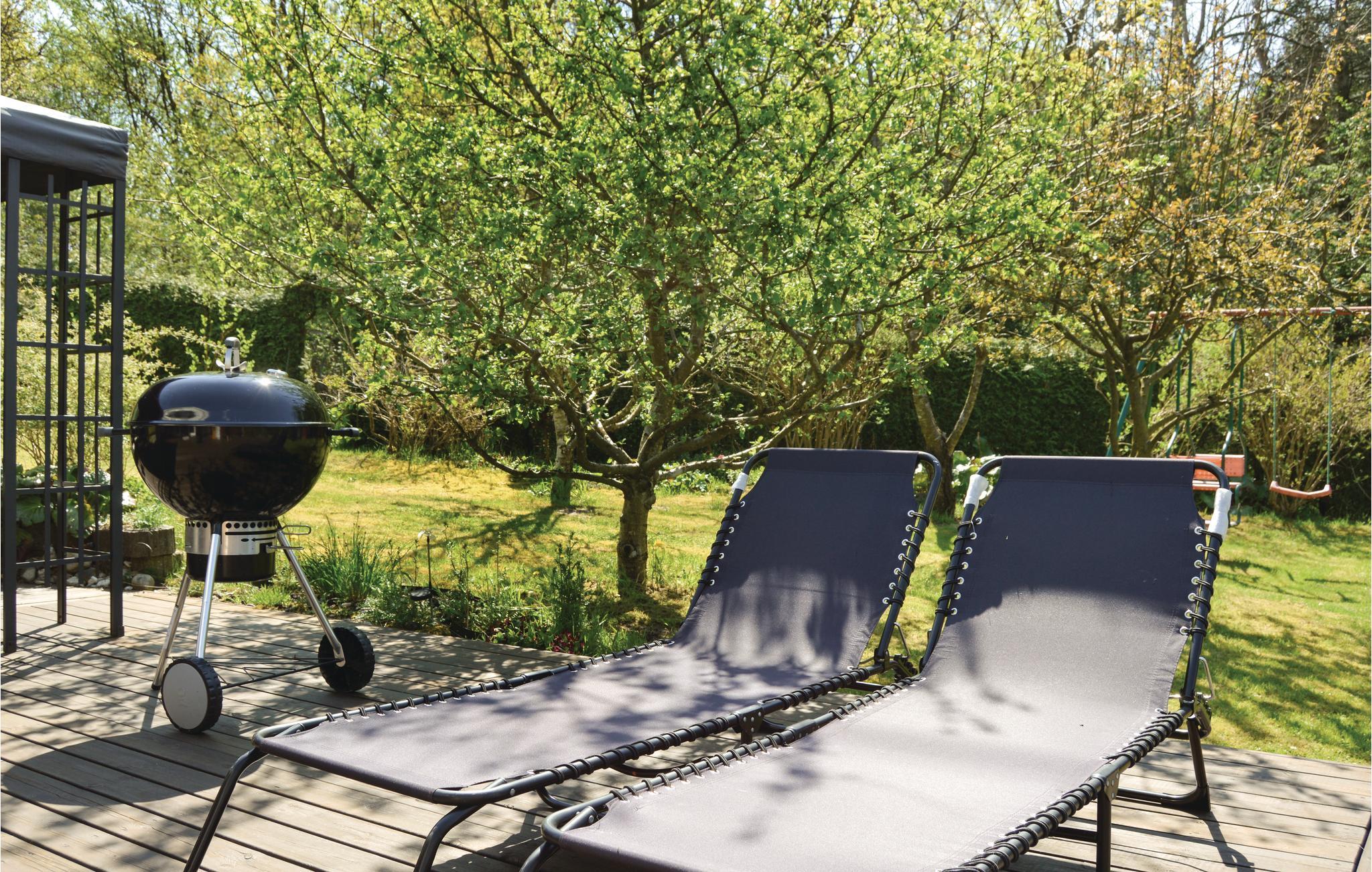 Hyggeligt sommerhus i Truust med store terrasser, have med frugttræer, adgang til fælles pool og legeplads, tæt på Silkeborg og Gudenå.