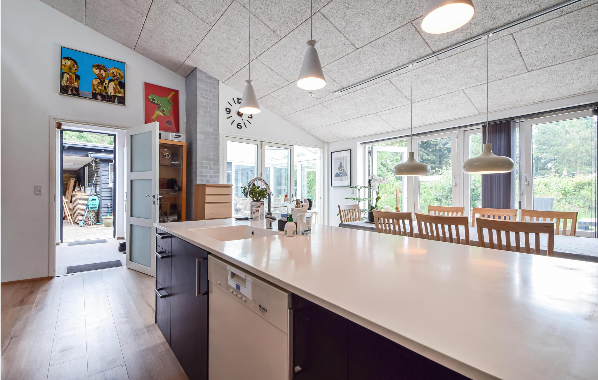Huset rummer dejlig havestue med masser af lys, stort køkken-alrum med fuldt udstyret køkken og dejlig stor spiseplads. Der er vinduer fra gulv til loft, så der er et godt kik til stort terrasseområde. I åben forbindelse med køkken finder I rummelig stue med opholdsgruppe.