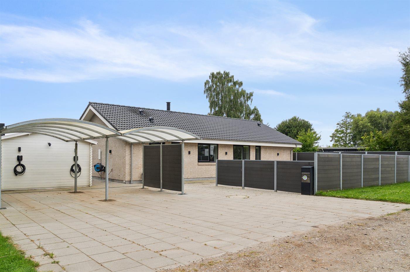 I den store have og på de omkringliggende arealer er der rig mulighed for boldspil og leg med børnene. I haven er der gynge. På den nordlige side af huset finder du et stort gårdhavemiljø, hvor der er godt med læ. Der er dobbeltcarport.