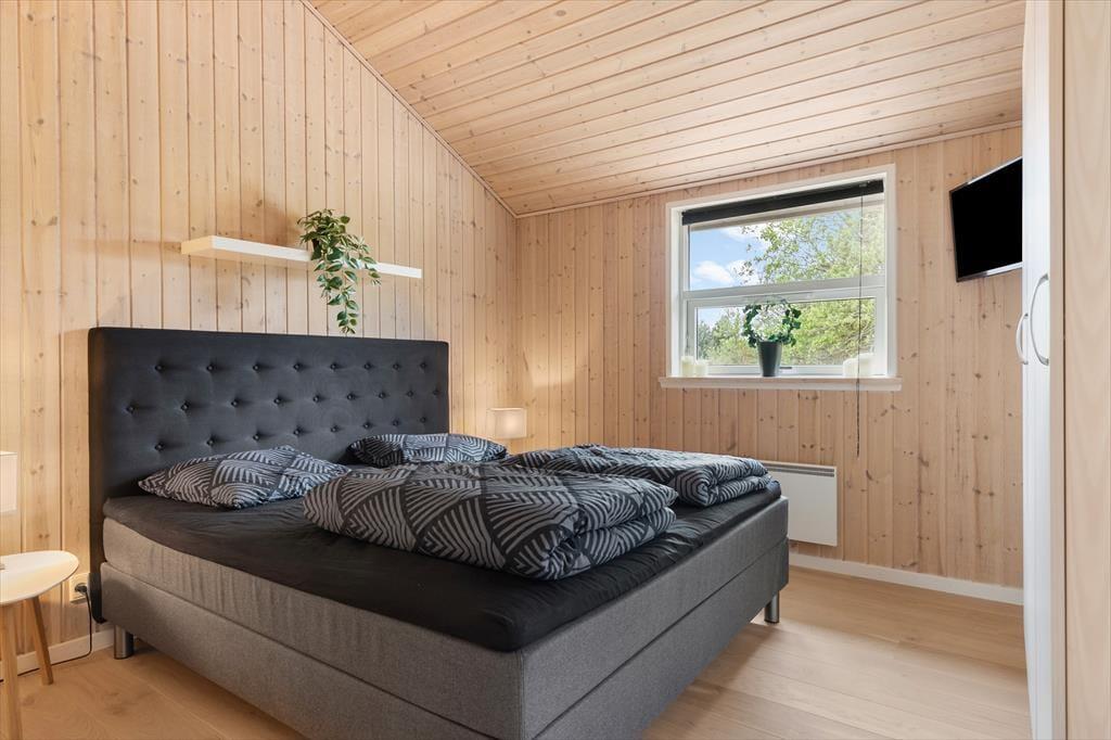 Inde i sommerhuset bliver I mødt af en lys og venlig atmosfære, hvor der er rigelig plads til afslapning og hygge. Det åbne opholdsrum indbyder til samvær med både sofaområde og spiseplads, og fra den rummelige stue kan I nyde udsigten til de grønne omgivelser udenfor. I køkkenet finder I alt, hvad der er brug for til at lave lækre måltider under ferien, og de praktiske detaljer sikrer, at hverdagen glider let. Soveværelserne er indrettet med komfort i tankerne, så I kan sove længe og vågne friske til en ny feriedag.
