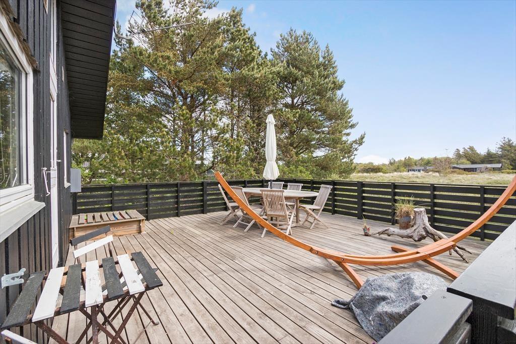 På den store naturgrund kan du trække vejret helt ned i maven og mærke feriefreden brede sig. Her er flere skønne terrasseområder, hvor du kan nyde morgenkaffen i solen, en afslappet frokost i skyggen eller en lun sommeraften med grill og gode grin. Det omkringliggende landskab indbyder til at lade tiden flyde, mens du nyder udsigten til grønne træer og lyden af vinden i blade og græs. Og når du får lyst til at udforske mere, ligger Tversted Klitplantage lige i nærheden – et oplagt sted til gåture eller cykelture i det bløde, kuperede terræn.