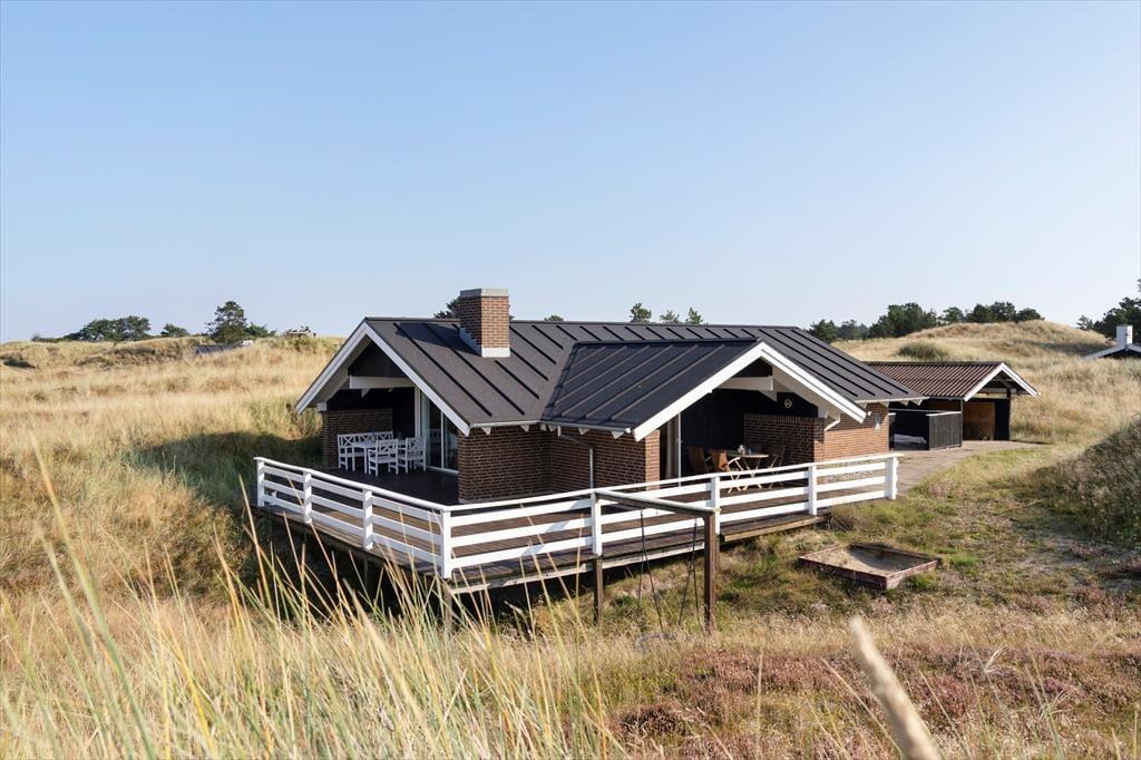 De skønne udearealer omkring huset er som skabt til at nyde ferielivet under åben himmel. Den rummelige terrasse indbyder til afslappende timer med morgenkaffen eller hyggelige grillaftener med udsigt til det omkringliggende naturlandskab. Børnene kan lege frit på grunden, mens de voksne kan lade blikket hvile på de grønne omgivelser og mærke den friske havluft. Naturen begynder lige uden for døren, og kun en kort gåtur væk finder du den brede sandstrand ved Vesterhavet, som altid byder på uforglemmelige oplevelser.