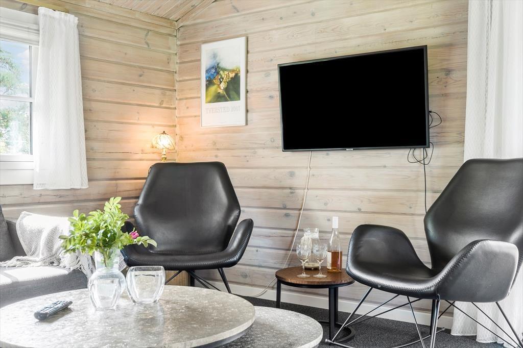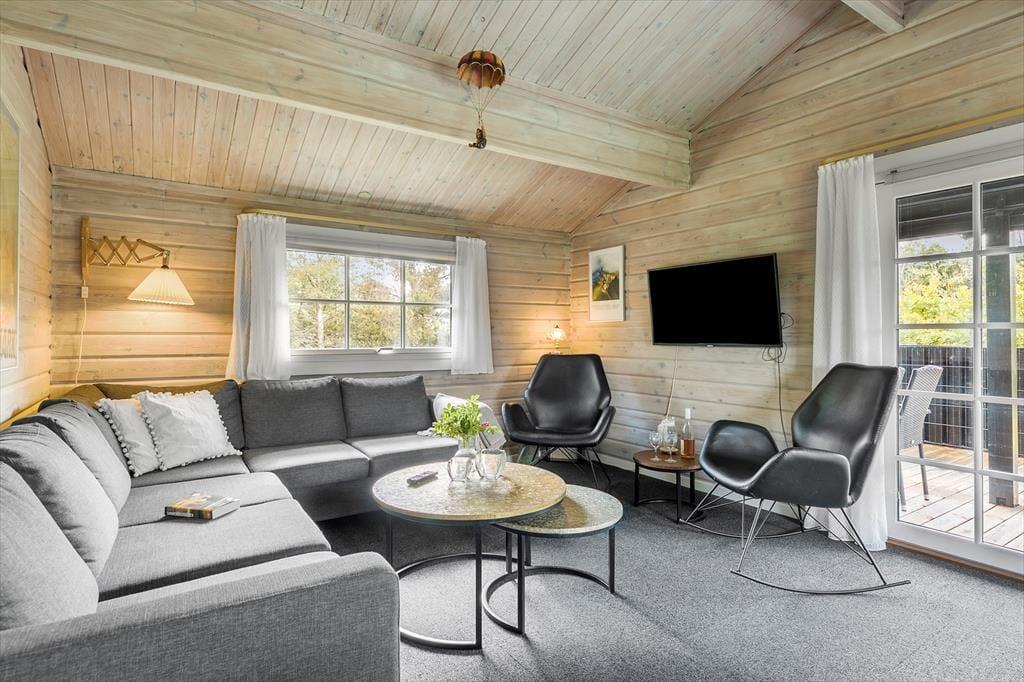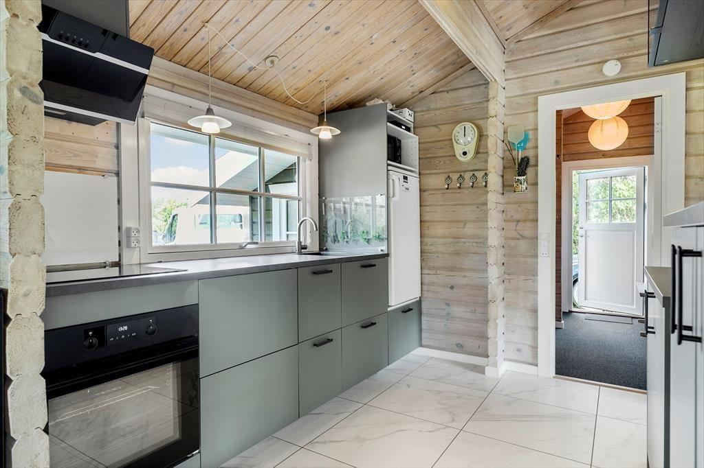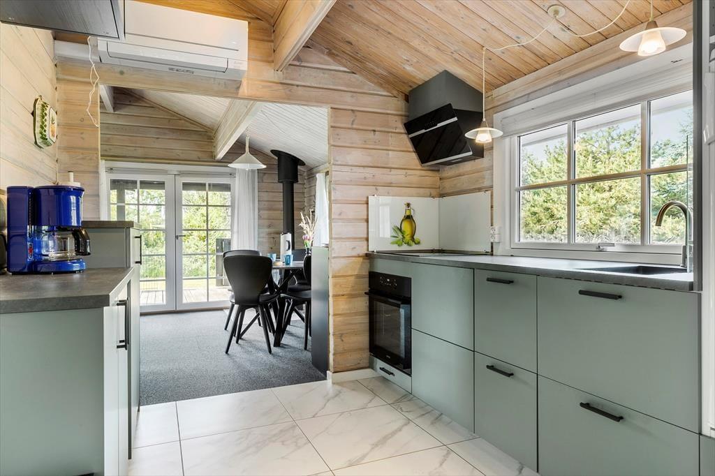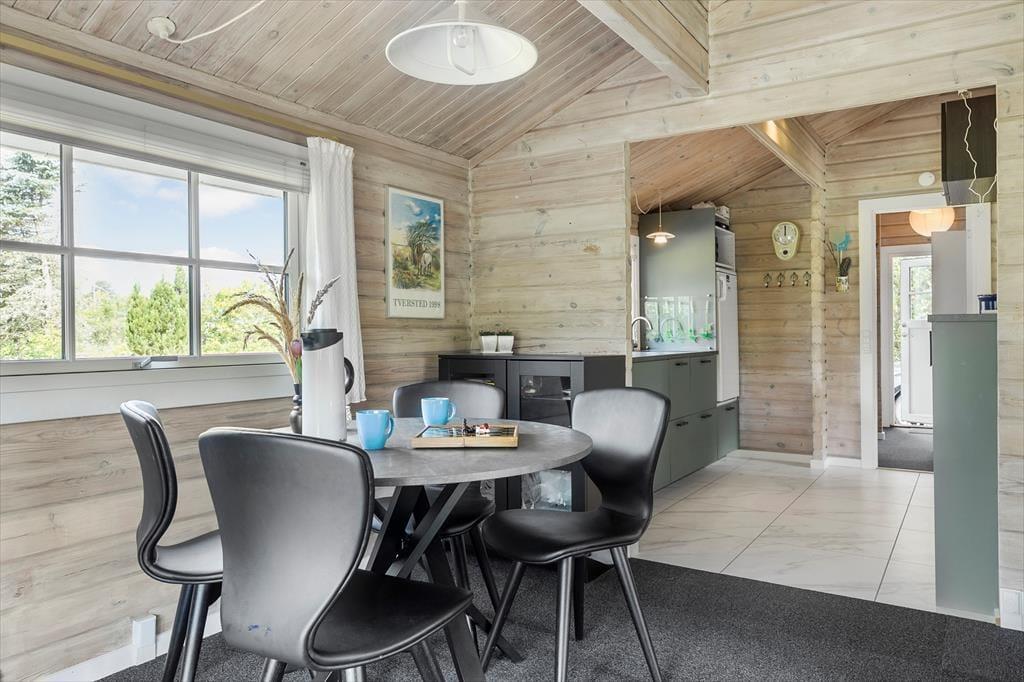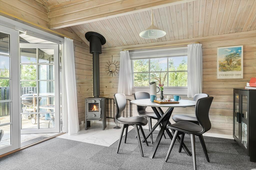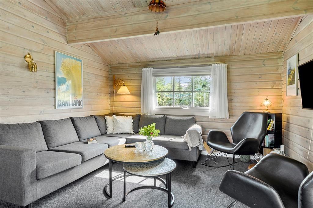 Indenfor bliver du budt velkommen i et varmt og indbydende sommerhus, der emmer af hygge. Det åbne opholdsrum er husets naturlige hjerte, hvor en blød sofa og en brændeovn sørger for en afslappet atmosfære – perfekt til lange aftener med familien. Store vinduespartier lader lyset strømme ind, mens udsigten til haven skaber en dejlig forbindelse til naturen udenfor. Køkkenet, der er i åben forbindelse med stuen, gør det nemt at holde samtalerne i gang, mens aftensmaden tilberedes. Husets soveværelser er rummelige og komfortable, så du kan vågne veludhvilet og klar til nye ferieoplevelser.