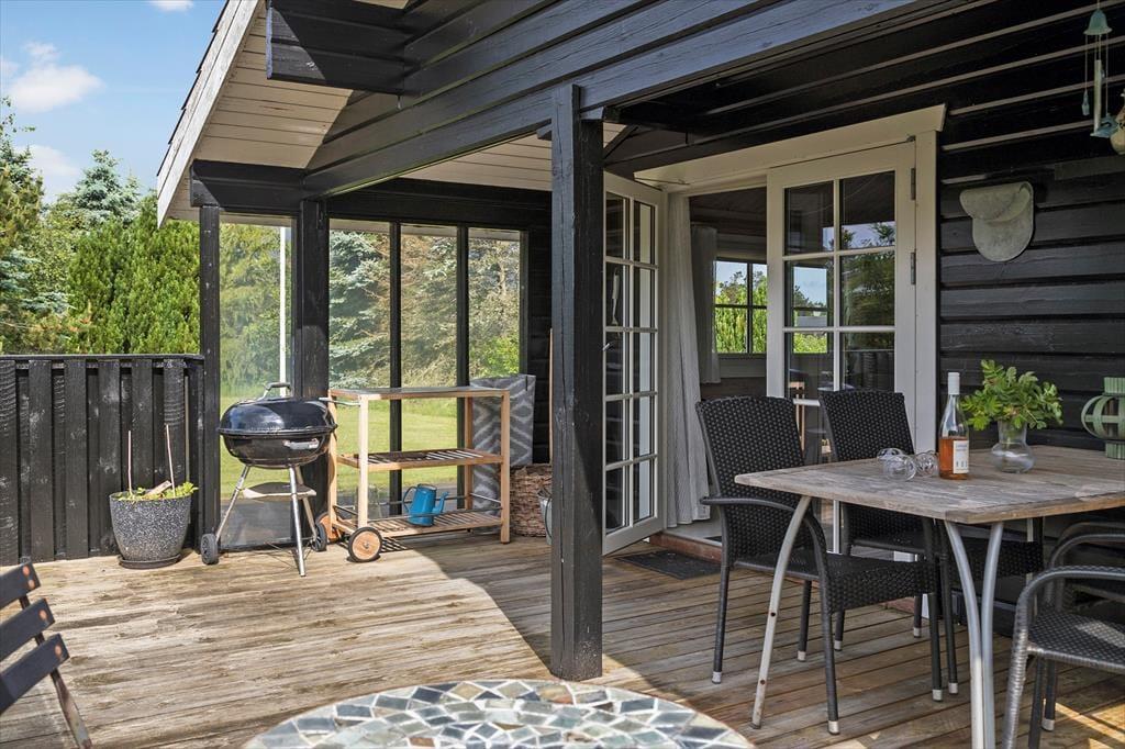 De rolige omgivelser omkring sommerhuset giver dig de bedste forudsætninger for at nyde udelivet. En hyggelig terrasse inviterer til morgenkaffe under åben himmel, og når dagen går på hæld, kan du tænde op i grillen og nyde aftensmaden i gode venners lag. Haven omkring huset tilbyder fred og ro – her kan børnene lege frit, mens du selv nyder en stille stund med en bog i hånden eller blot lytter til fuglenes kvidren.
