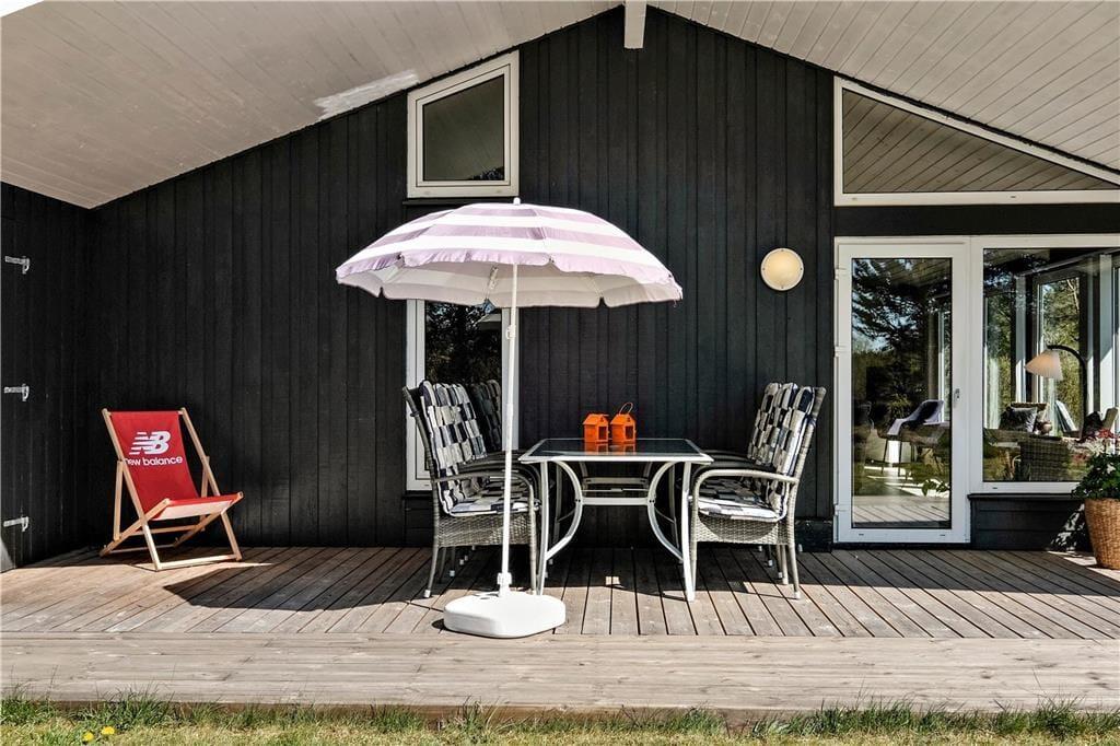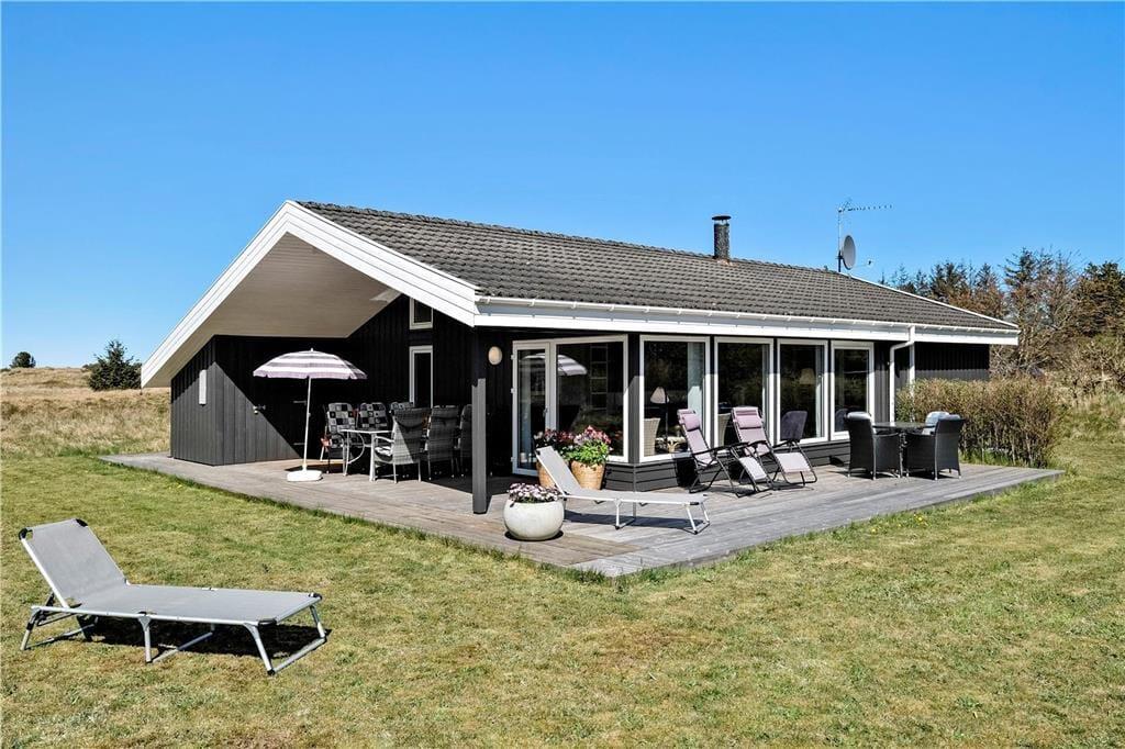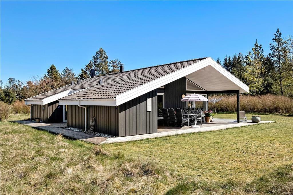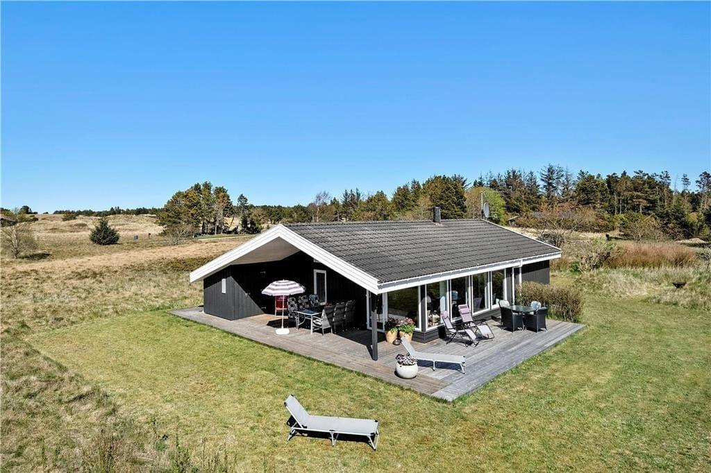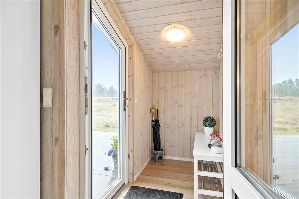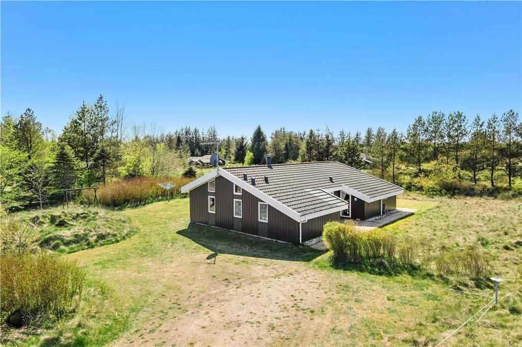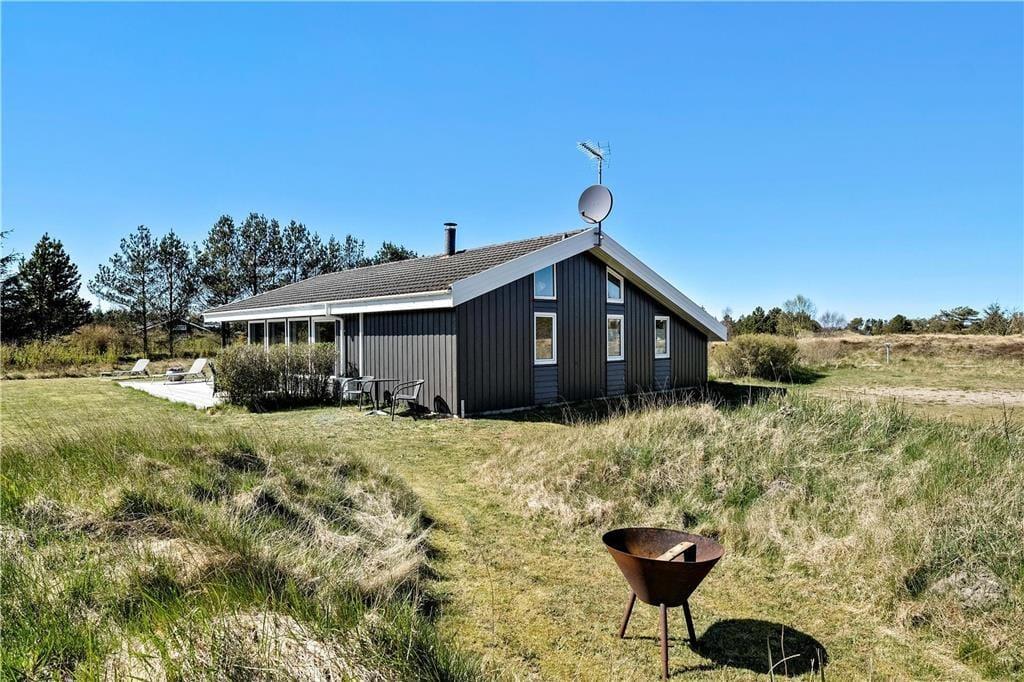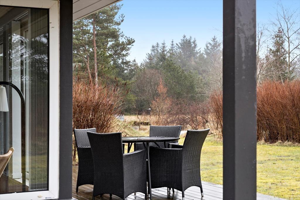 Sommerhuset ligger på en stor naturgrund med en lille græsplæne, hvor børnene kan lege, og de voksne kan nyde en kop kaffe i solen. De rolige omgivelser giver mulighed for at slappe af og komme helt ned i gear. Fra terrassen kan du lytte til fuglesangen og mærke den friske luft fra klitplantagen, som ligger få minutters gang væk. Terrassen er det perfekte sted at samle familien til en hyggelig middag omkring grillen, mens solen går ned over landskabet.