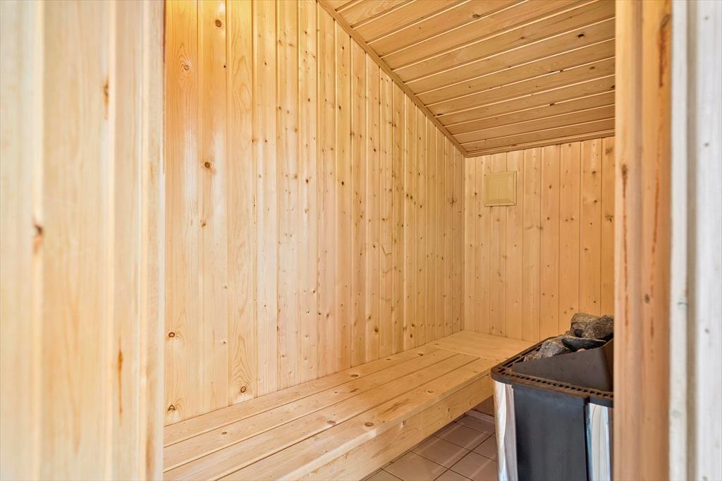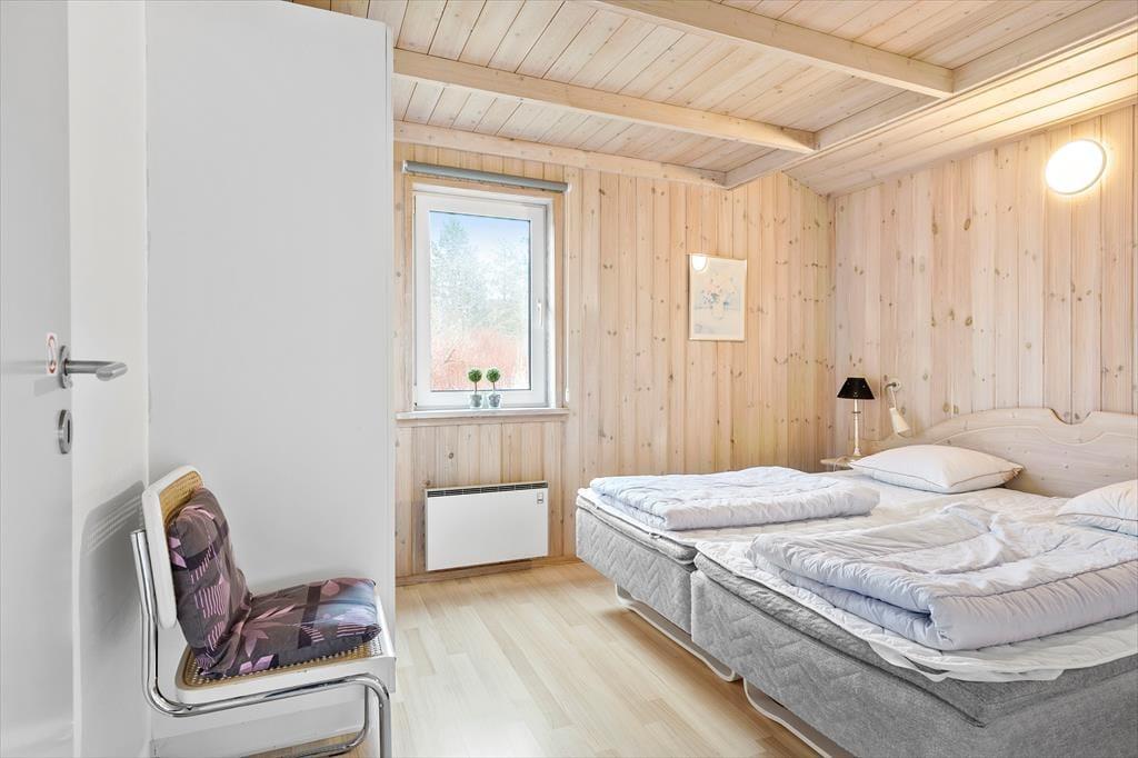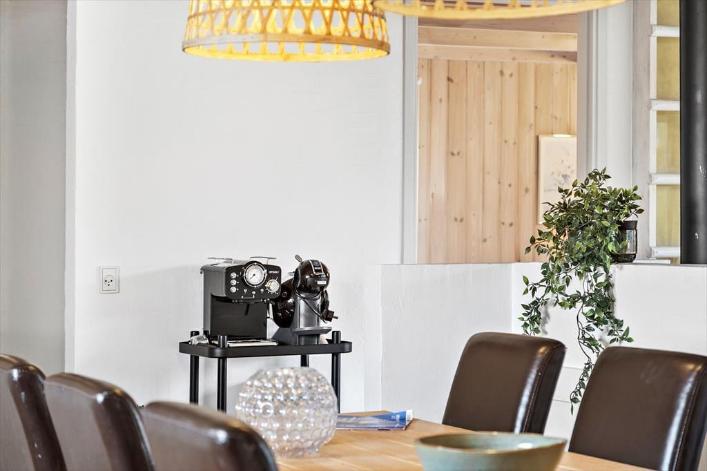 Det første, du bemærker, når du træder ind i sommerhuset, er den lyse og venlige atmosfære, som renoveringen i 2024 har skabt. De åbne opholdsrum indbyder til samvær, og det store, lyse køkken i åben forbindelse med stuen gør det nemt at være sammen, selv mens maden tilberedes. Den hyggelige stue med bløde møbler og store vinduespartier giver dig en smuk udsigt til naturen udenfor, og brændeovnen sørger for varme og hygge på kølige aftener. Husets værelser er indrettet med fokus på komfort og ro, og det moderne badeværelse fuldender indtrykket af et gennemført feriehus.