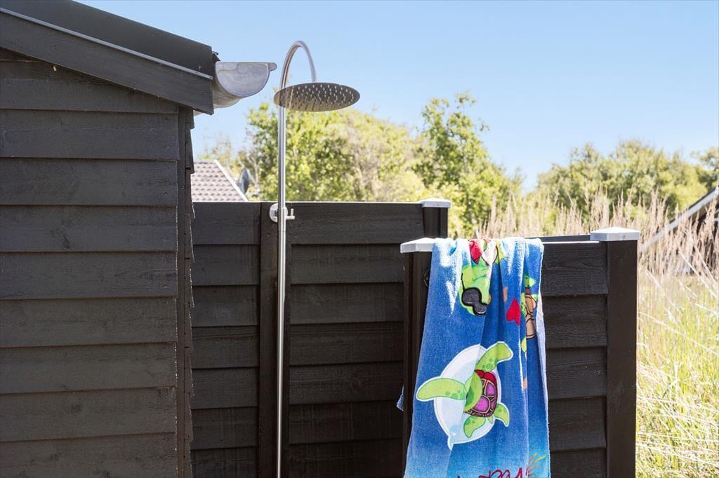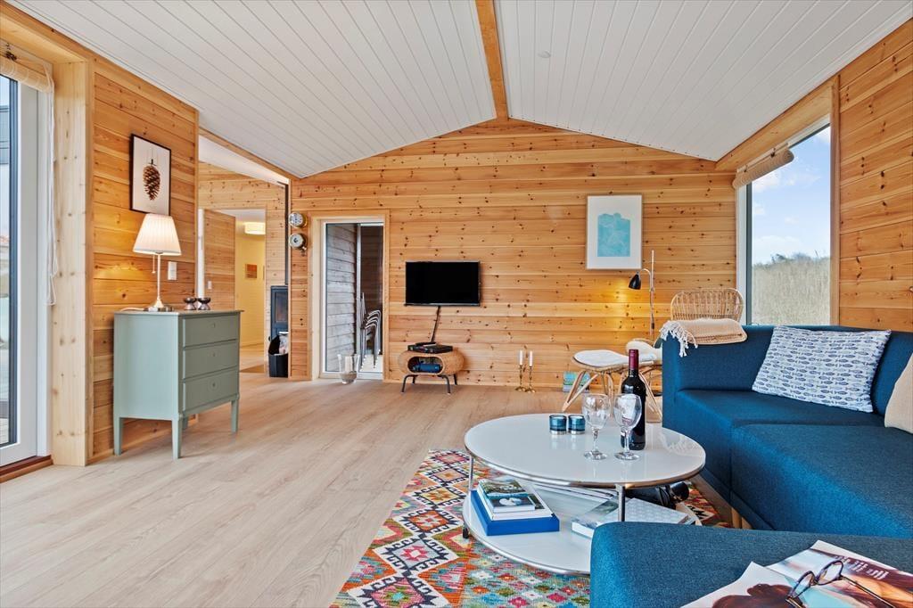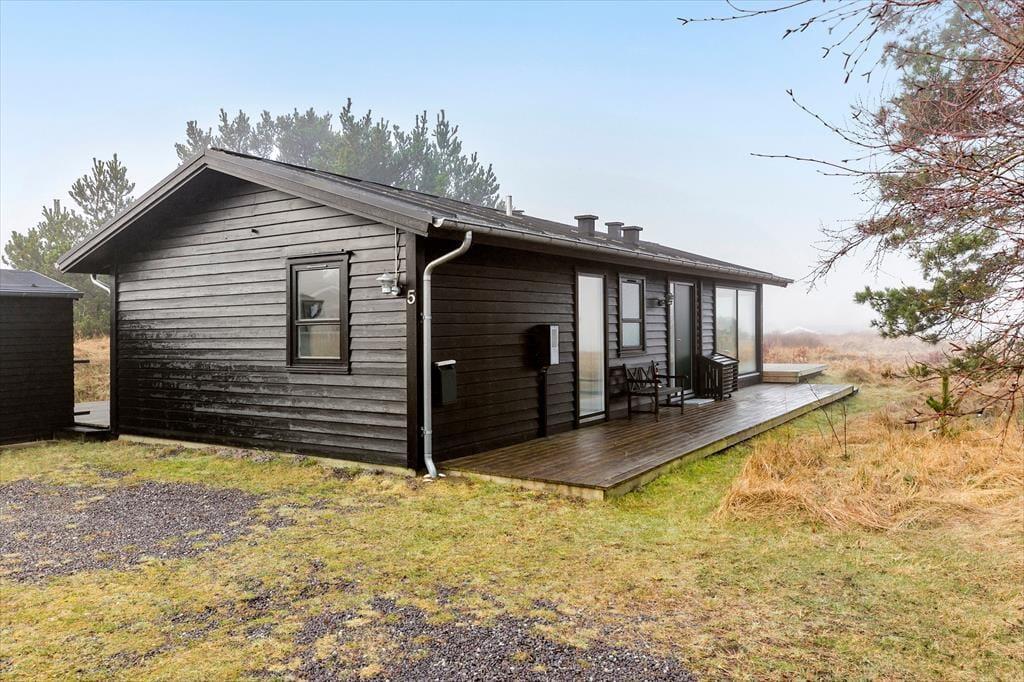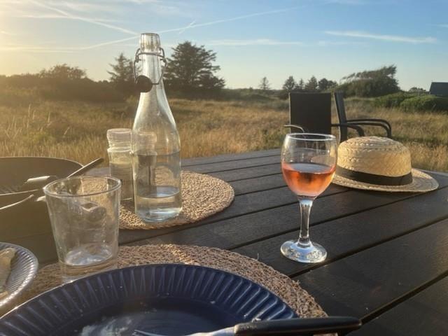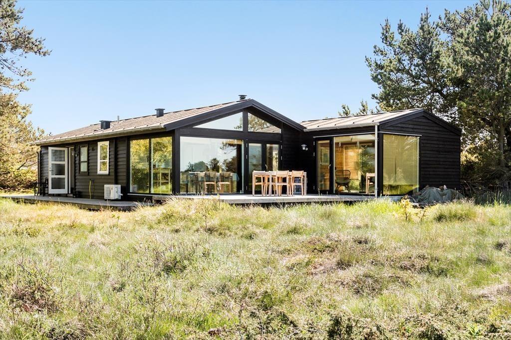 Sommerhusets skønne indre rammer bliver flot akkompagneret af et lækkert terrassemiljø i det fri. Der er tre gode opholdsområder at vælge imellem, når I vil sole jer eller slappe af i parasollens skygge, og om aftenen kan I grille, mens solen farver himlen over Tversted i orangerøde nuancer. Udsigten over husets egen naturgrund og videre ud over det åbne landskab er betagende, og hen over klitterne kan I nyde udsigten til Vesterhavet.