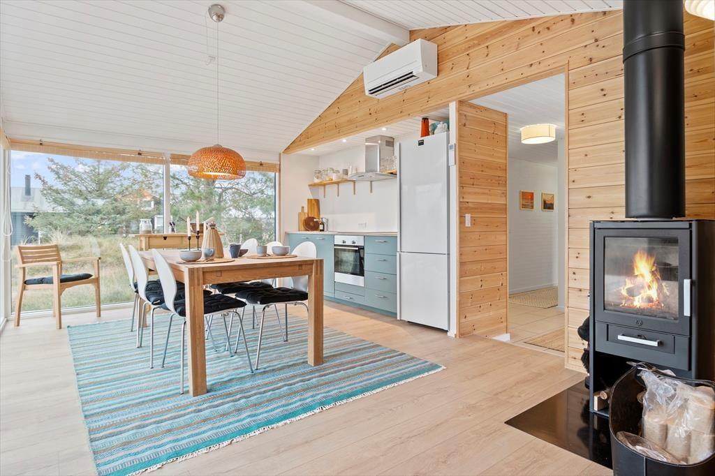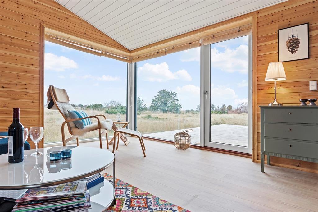 Naturen bliver inviteret helt ind i stuen takket være de store vinduer, så det føles ganske særligt at slappe af inden døre. Gennem dagen kan I følge med i, hvordan lyset ændrer landskabets farvetoner fra morgen til aften, og der er god chance for at se fasaner, rådyr eller andet vildt komme forbi på visit. Selve sommerhuset tager sig også godt ud efter gennemrenoveringen i 2022, og i opholdsrummet er der loft til kip, trælister på væggene, brændeovn og stilfuldt interiør. En fladskærm med Apple TV er klar til at levere underholdningen, og der er Bluetooth højttalere, hvis I vil have god musik i ørerne, når kræser om maden i det åbne og velindrettede køkken. Fra opholdsafdelingen er der direkte adgang til en rummelig entré med vaskemaskine, og sommerhuset byder derudover på tre gode soveværelser og et moderne badeværelse med bruser.