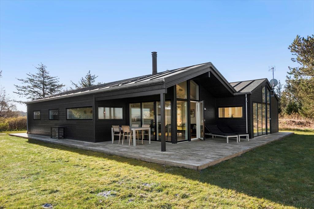 Udenfor venter et dejligt terrasseområde, hvor du kan nyde solen og udsigten til Vesterhavet. Start dagen med morgenkaffe under åben himmel, slap af i liggestolen eller inviter familien til en hyggelig grillaften. Den store græsplæne omkring huset giver plads til leg og boldspil for både store og små, og børnene kan trygt løbe rundt og lege i de rolige omgivelser. Naturen er lige uden for døren, og du kan næsten mærke havbrisen, der blander sig med den friske luft fra det smukke klitlandskab.