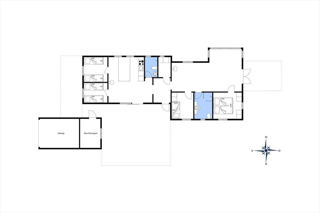 Sommerhuset byder dig indenfor med en lys og rummelig atmosfære, hvor store vinduespartier og højt til loftet skaber en følelse af frihed og nærhed til naturen. Det centrale opholdsrum kombinerer stue og køkken i en åben planløsning, der gør det nemt at være sammen – uanset om du slapper af i sofaen, laver mad eller nyder et måltid ved spisebordet. Brændeovnen i stuen spreder varme og hygge på køligere dage, og de naturskønne omgivelser kan nydes direkte fra vinduerne. Soveværelserne er komfortabelt indrettede og indbyder til en god nats søvn, så du vågner frisk og klar til dagens oplevelser.