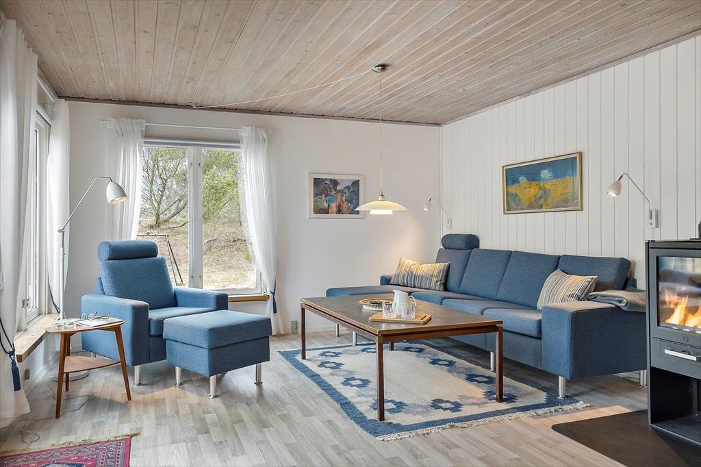 I dette lyse og hyggelige sommerhus på Fasanvej 2 bliver du budt velkommen af en varm og indbydende atmosfære, hvor du straks kan slappe af og nyde feriestemningen. Stuen er husets naturlige samlingspunkt, hvor du kan synke ned i sofaen med en god bog eller spille brætspil med dine nærmeste, mens brændeovnen knitrer og skaber en hyggelig stemning. Den åbne planløsning mellem stue og køkken gør det let at være sammen, selv når der kokkereres aftensmad eller forberedes en kop varm kakao efter en frisk gåtur ved havet. Sommerhuset har plads til fire personer, og her kan du se frem til rolige nætter og langsomme morgener i soveværelserne, der indbyder til afslapning og ferieidyl.