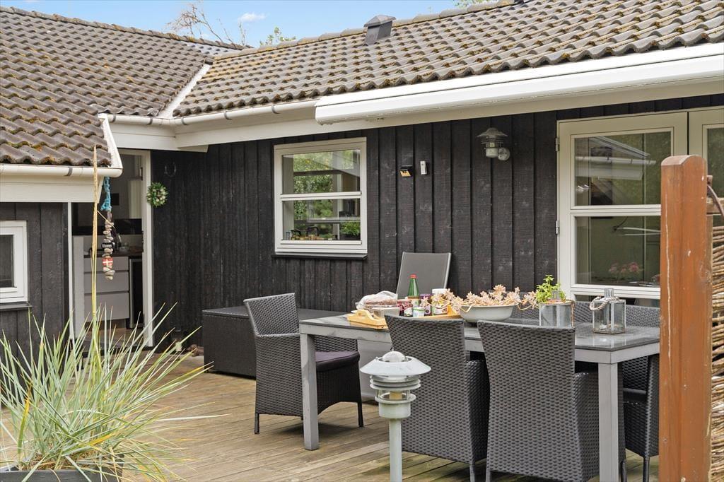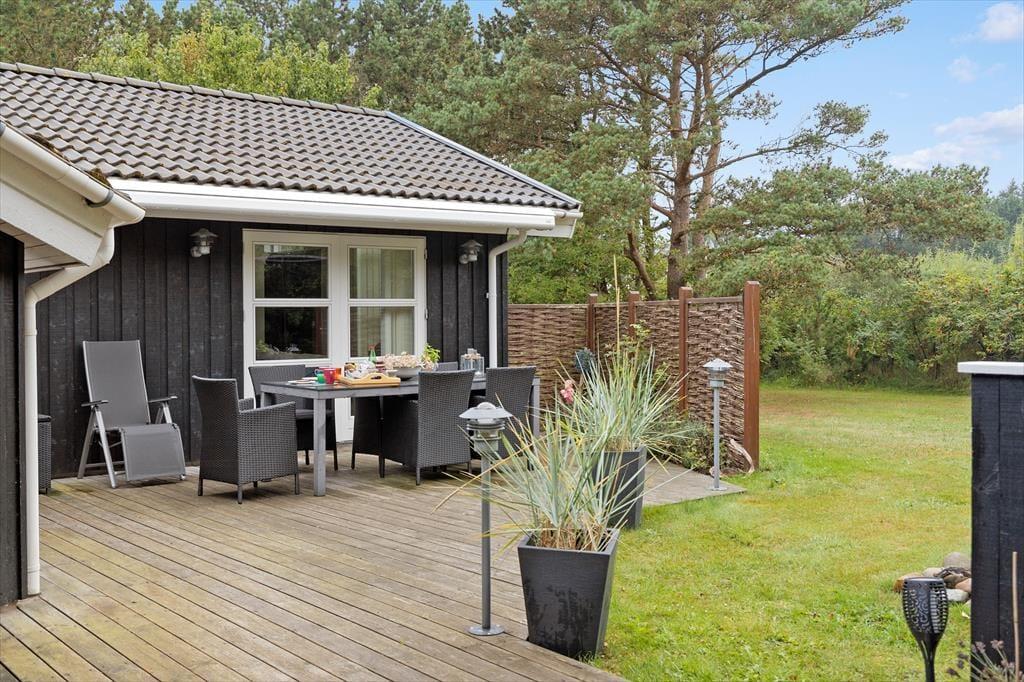 Sommerhuset ligger på en 1296 m2 stor naturgrund, hvor der er masser af plads til at udforske og lege. Du vil nyde de lyse sommeraftener på den store terrasse, hvor du kan spise middag under åben himmel eller slappe af i liggestolen. Området omkring sommerhuset er omgivet af natur, og du kan vælge at tilbringe dagen med at gå på opdagelse i den nærliggende skov eller tage en kort gåtur til Tversted Strand for at føle sandet mellem tæerne. Den store græsplæne indbyder til udendørs leg og afslapning, og du kan altid finde et stille hjørne at nyde din ferie på.