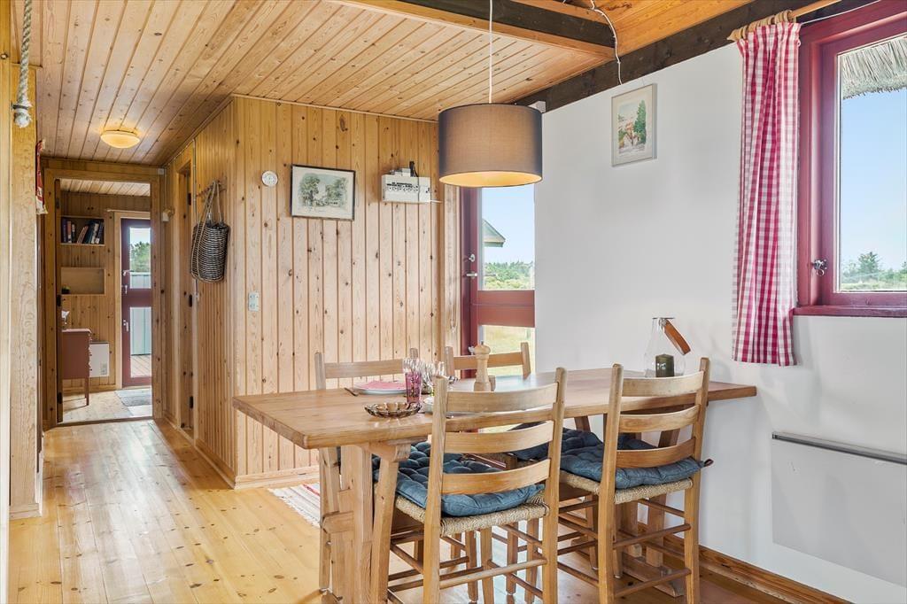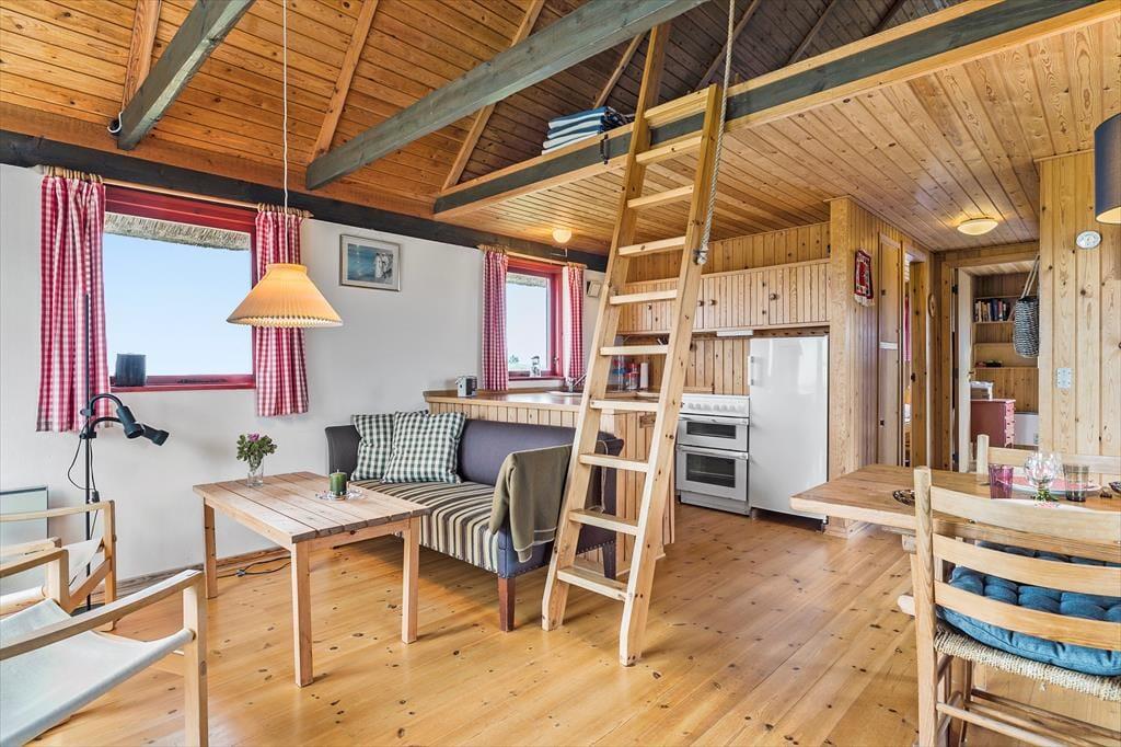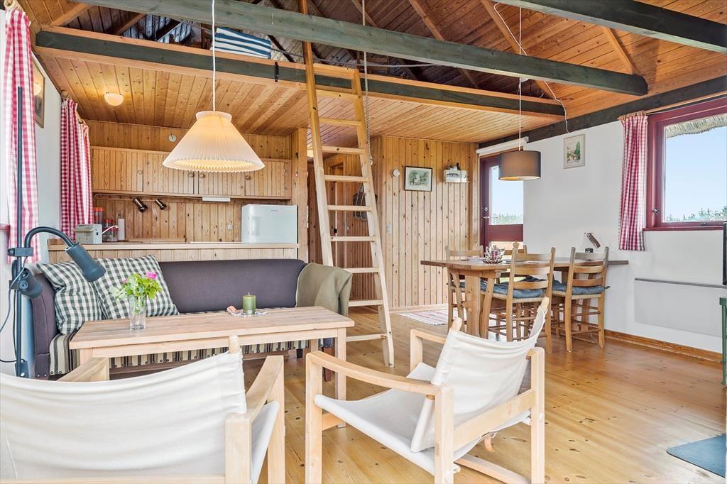Indenfor mødes du af en lys og indbydende atmosfære, der skaber den perfekte ramme om ferien. De store vinduer i stuen giver et fantastisk lysindfald og åbner op til den smukke natur udenfor, så du kan nyde havudsigten og lyden af bølgerne, selv når du sidder indenfor. I stuen finder du en hyggelig brændeovn, der gør det ekstra behageligt at slappe af om aftenen, når du har haft en lang dag med strandture og udflugter. Det åbne køkken gør det nemt at tilberede lækre måltider, og når du sidder ved spisebordet, kan du beundre den idylliske natur, der omkranser sommerhuset.