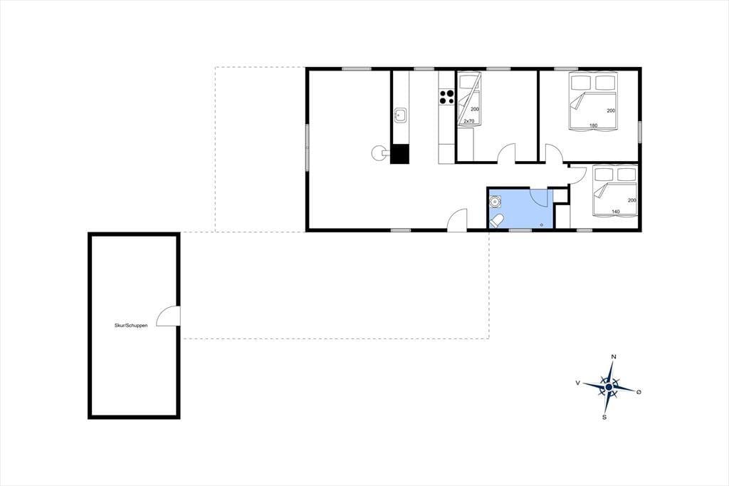 Når du træder ind i sommerhuset, bliver du mødt af en hyggelig og lys atmosfære, hvor du straks føler dig hjemme. Stuen er både indbydende og rummelig, og den store vinduesparti giver et vidunderligt kig over det omkringliggende landskab og havet i det fjerne. Her er der god plads til at samle familien foran brændeovnen, hvor flammerne spreder varme og hygge, eller til at slænge sig i den dejlige sofa, mens du nyder udsigten. Køkkenet er åbent og praktisk indrettet, hvilket gør det nemt at tilberede lækre måltider til dig og dine kære. Sommerhusets indretning er enkel, men funktionel, og hver eneste detalje er med til at skabe en afslappet og behagelig ferieatmosfære.