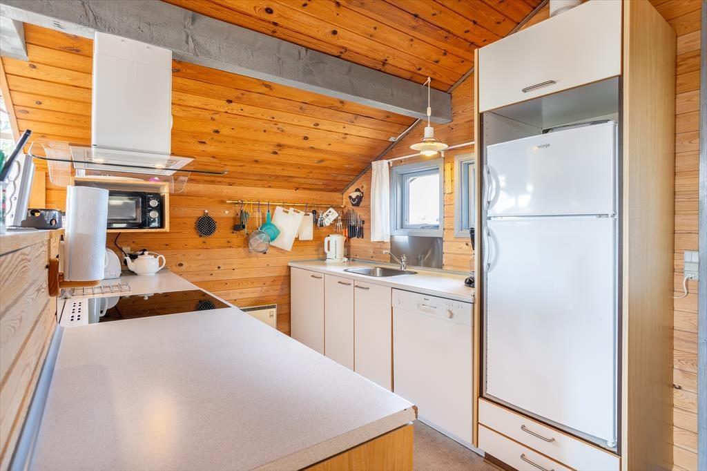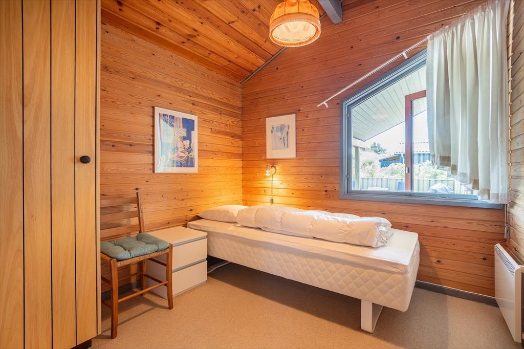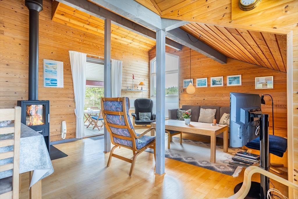 Med sin rustikke charme og hyggelige atmosfære passer sommerhuset som fod i hose til de rolige og naturskønne omgivelser. Uanset om I vil læse tykke romaner, komme videre med strikkeprojektet eller spille yatzy dagen lang, er det dejligt at slappe af i stuen, der for øvrigt er udstyret med både parabol-tv og brændeovn. I det åbne køkken kan I hygge jer med madlavningen, og de færdige retter kan nemt langes over til spisebordet på den anden side af halvmuren. Et rummeligt badeværelse med bruser og vaskemaskine hører med til planløsningen, og på de tre gode soveværelser har I sengepladser til fem personer.