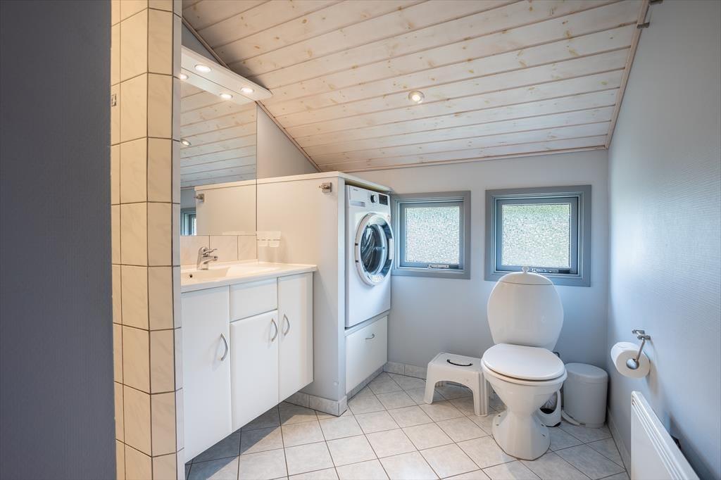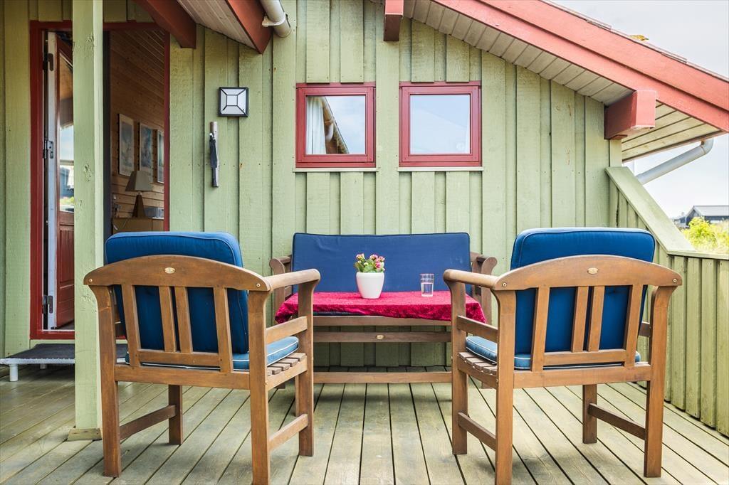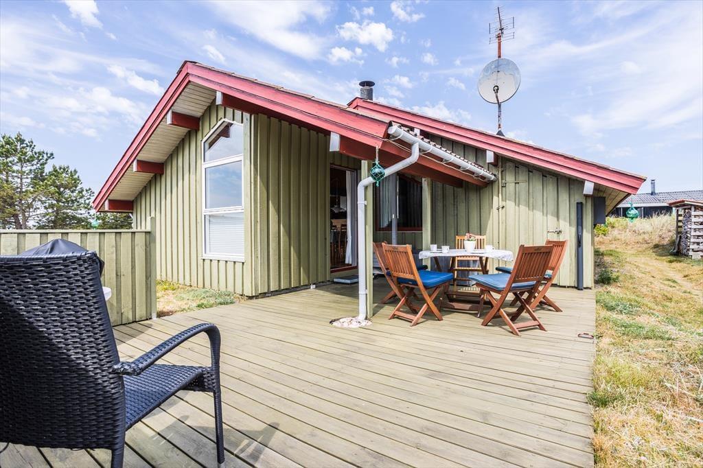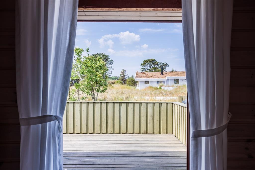 Sommerhusets gode terrasser står klar til at lokke jer ud, så snart solen skinner. Begge terrasseområder er delvist overdækkede, hvis I går efter skygge, og både træhegnet og den kuperede naturgrund er med til at skærme arealerne lidt af. Vil I sidde med udsyn og i tæt kontakt til naturen, kan I rykke op til udsigtsbænken på klittoppen, hvor I også finder et gyngestativ til børnene.