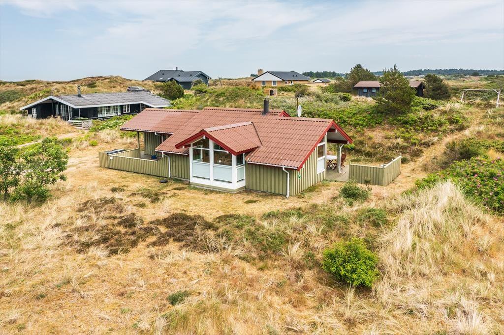 I det smukke, kuperede klitlandskab mellem Tversted by og Tversted Klitplantage ligger dette charmerende sommerhus og putter sig i bunden af den blinde vej Svallerhulvej.