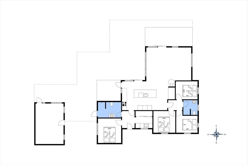 Når du træder ind i sommerhuset, bliver du mødt af en lys og venlig atmosfære, der straks inviterer til afslapning. Det store opholdsrum med åbent køkken er hjemmets naturlige samlingspunkt, hvor du kan lave mad, mens snakken går ved spisebordet eller i den hyggelige alkove ved køkkenområdet. Indretningen er varm og imødekommende, og med plads til at være sammen på tværs af aktiviteter er det let at skabe hyggelige feriestunder – hvad enten det er med en god film, et spil kort eller en kop kaffe i roligt tempo. To badeværelser gør det ekstra bekvemt, når I er mange afsted, og de lyse rum giver en rar fornemmelse af luft og plads.