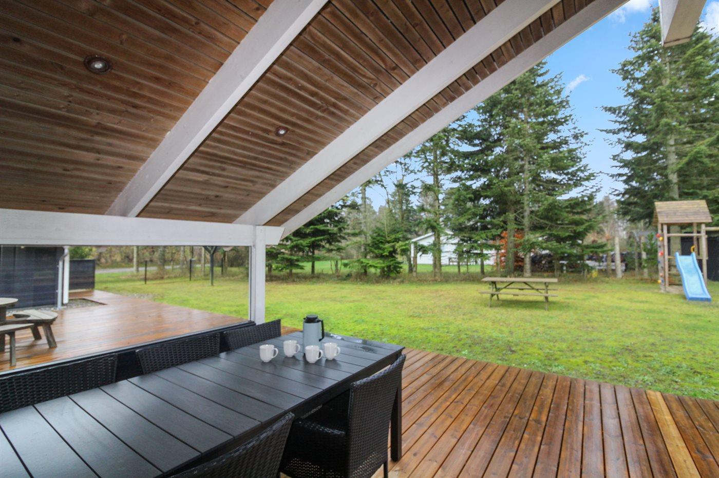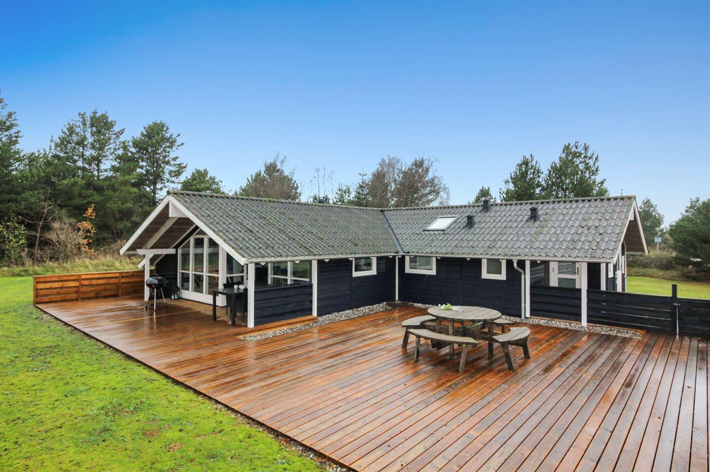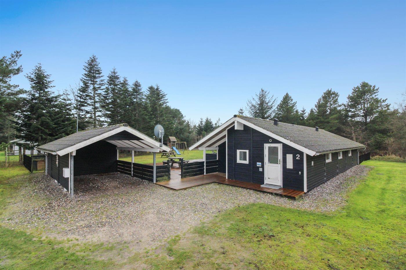 Ferieboligen er beliggende på en 1841 m² stor naturgrund. Grunden er indhegnet. Der er 1300 m til havet. Nærmeste forretning er beliggende i en afstand af 800 m. Til ferieboligen hører åbent terrasseareal. Desuden er der overdækket terrasse. Der er redskabsrum. Gynge. Sandkasse. Rutchebane. Beachvolley. Gasgrill står til rådighed. Der er carport til rådighed. Der er installeret stik til opladning af elbil. Parkering ved ferieboligen.