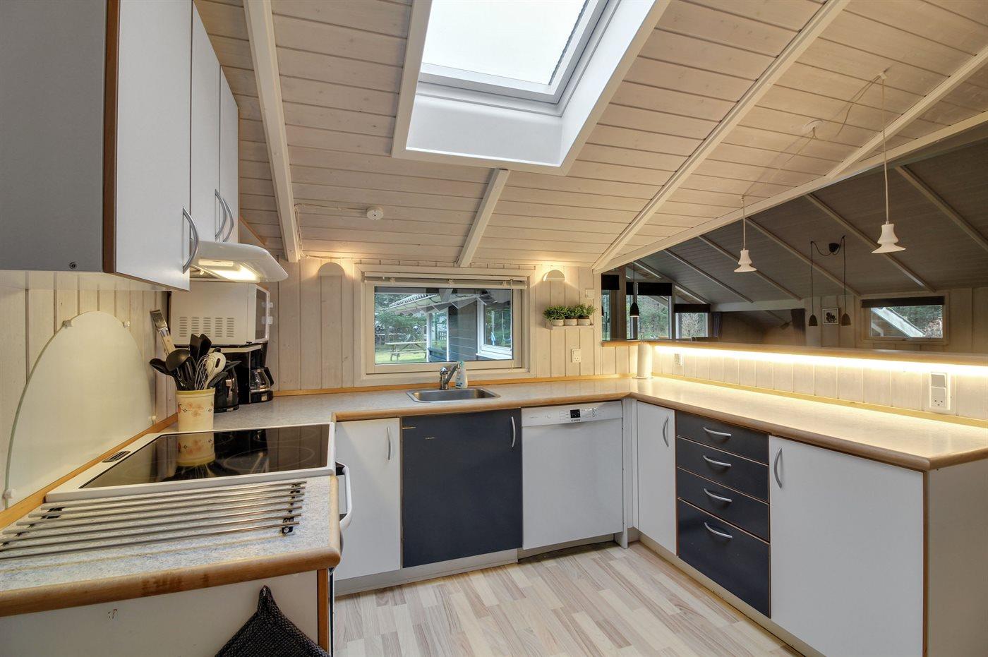 Køkkenet er udstyret med 1 køleskab. Der er 4 keramiske kogeplader, varmluftovn, mikrobølgeovn samt opvaskemaskine.