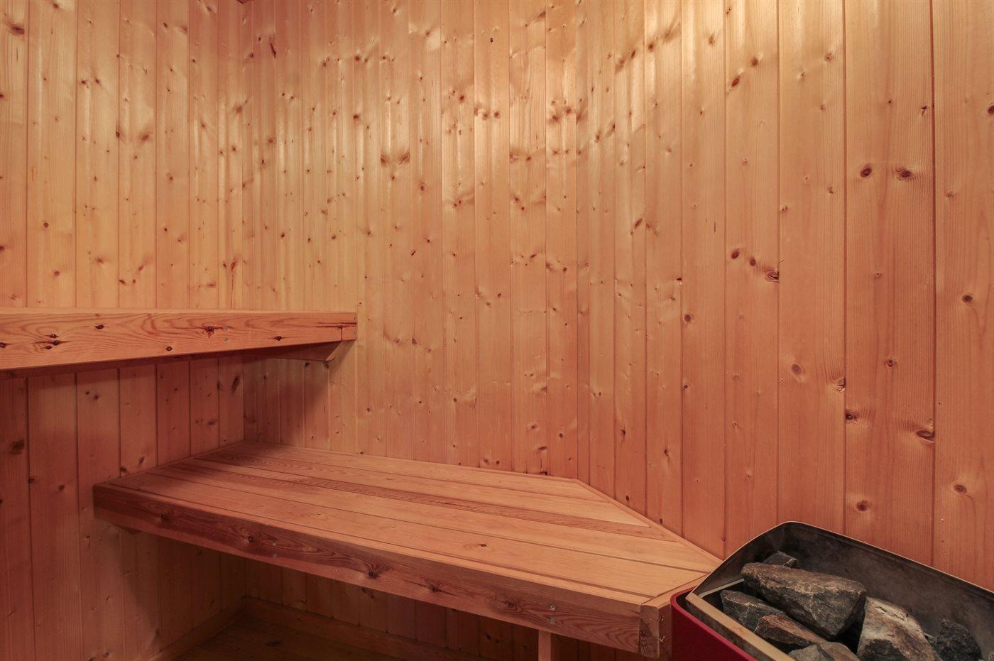 Der er 2 badeværelser med bruseniche og 2 toiletter. Der er gulvvarme på 2 badeværelser. I saunaen er der mulighed for afslapning.