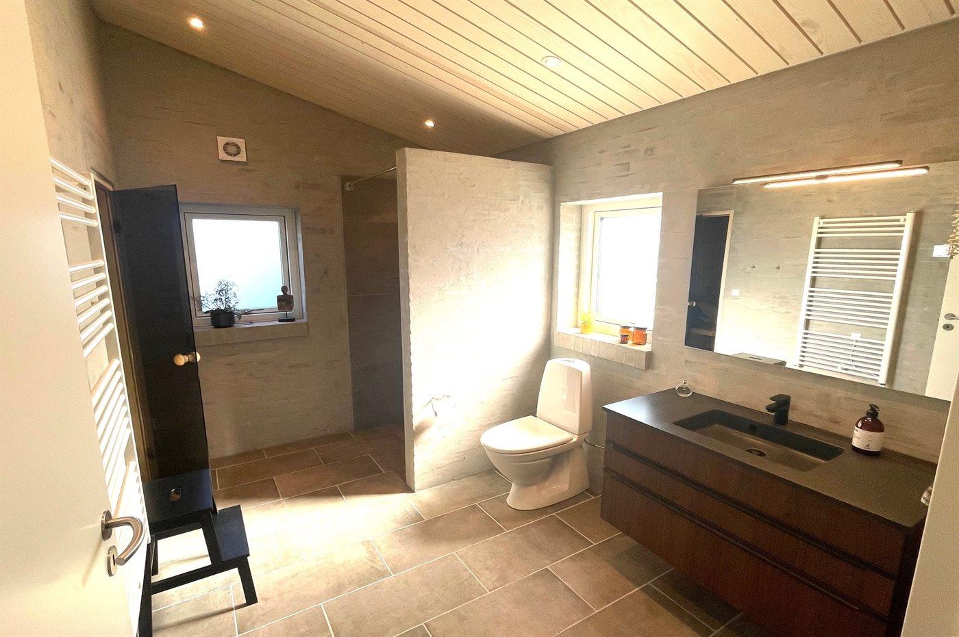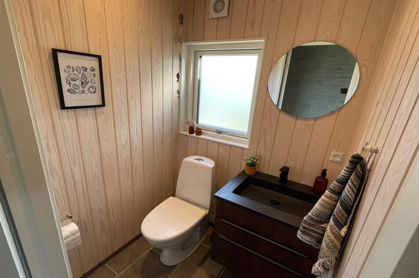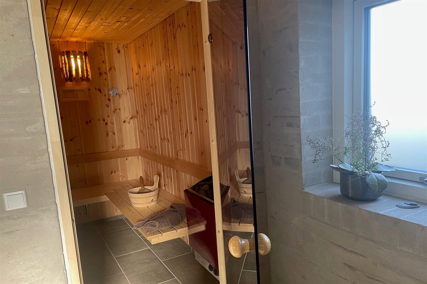 Der er 1 badeværelse med bruseniche og 2 toiletter, heraf 1 gæstetoilet. Der er gulvvarme på 1 badeværelse. Der er gulvvarme på gæstetoilettet. I saunaen er der mulighed for afslapning.