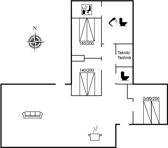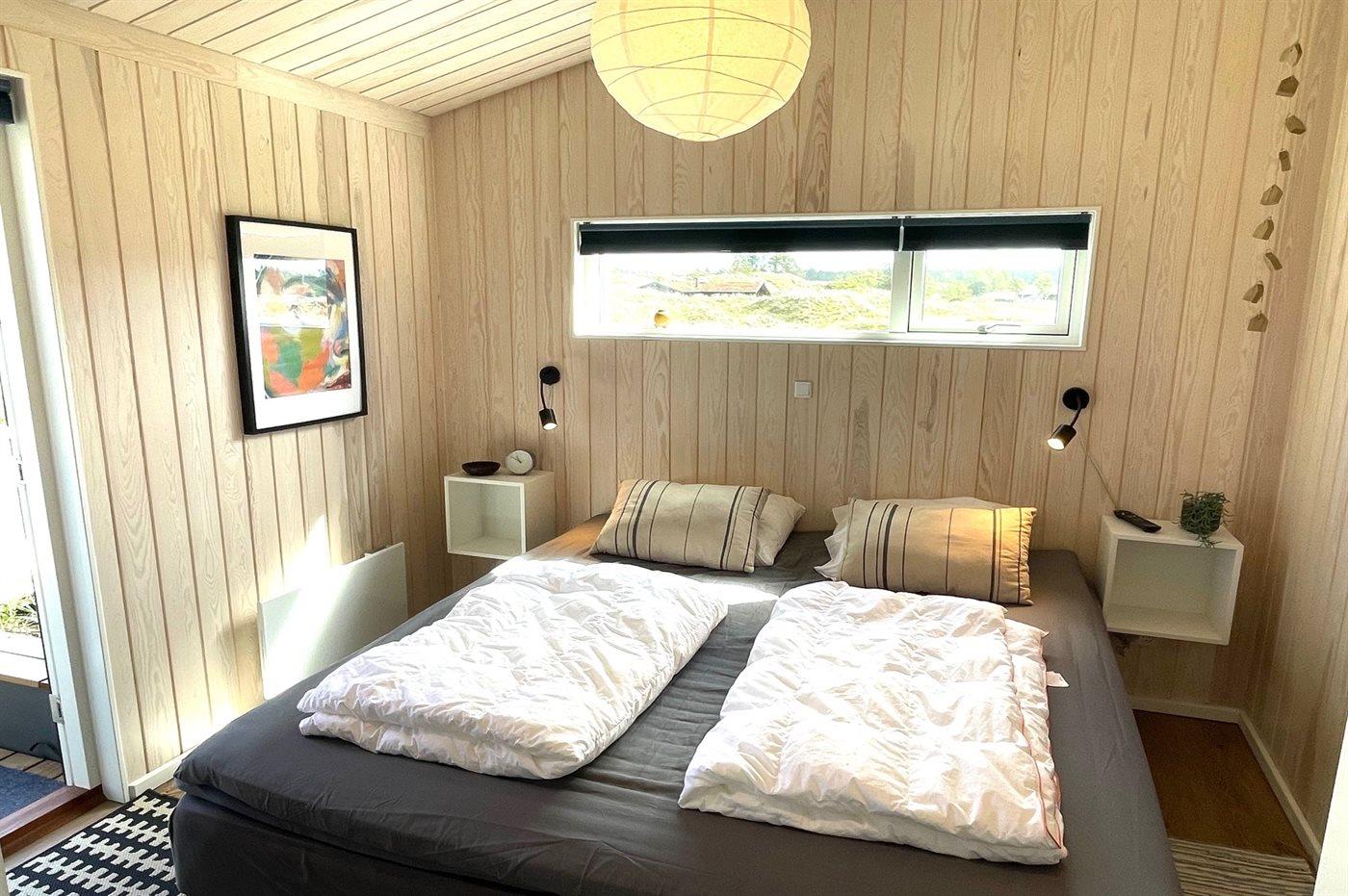 Der er i alt 3 soveværelser. Sovepladserne fordeler sig på: 4 sovepladser i dobbeltsenge. 2 sovepladser i enkeltsenge. Derudover er der 1 stk. barneseng.