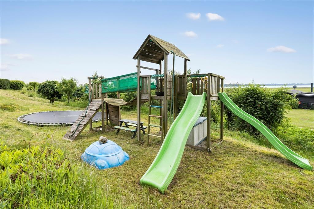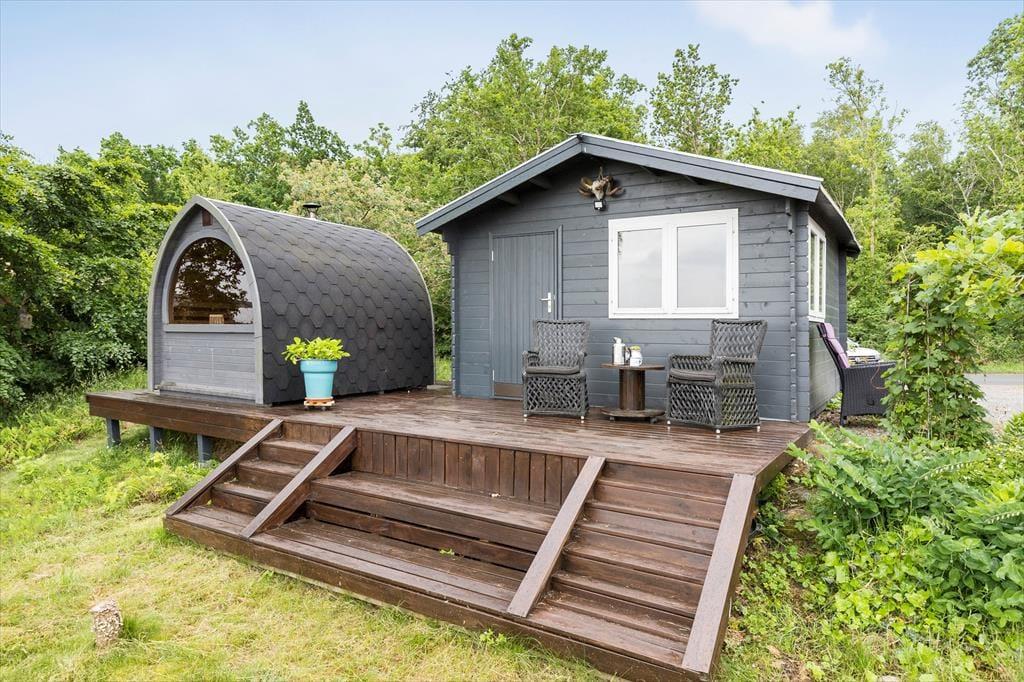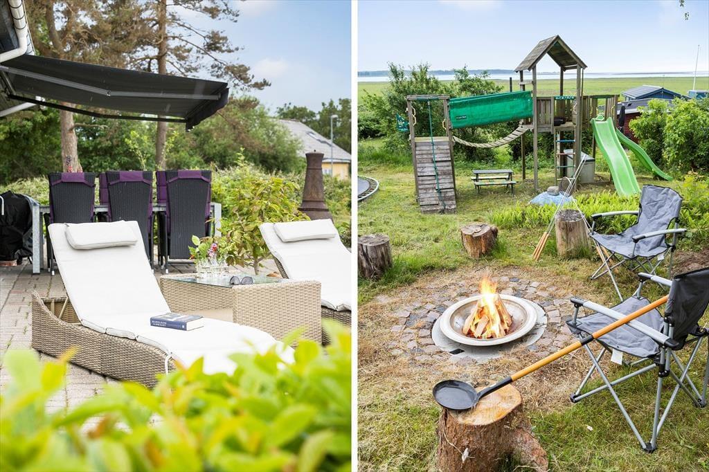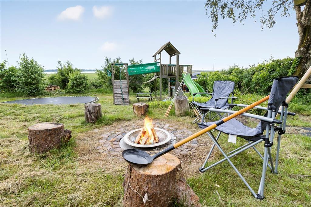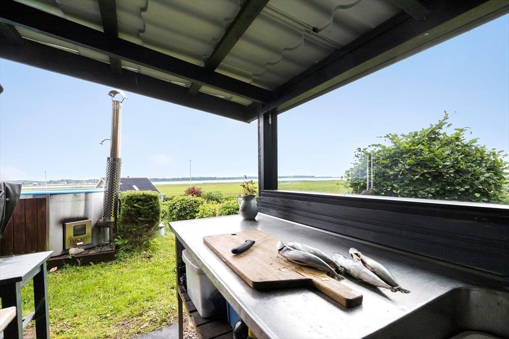 Nyd livet udenfor: På både terrassen og den øvrige grund, bliver du omfavnet af naturens skønhed og ro. Alting her er så velovervejet og lavet med det formål at opnå mest mulig nydelse. Du kan næsten mærke stressen forsvinde, mens du nyder din morgenkaffe omgivet af et rigt og vidunderligt fugleliv med alt fra havørne til småfugle. Du kan holde øje med den lokale slæbebåd, der hjælper skibene til Randers Fjord, mens du drømmer om, hvor stor en fisk du selv fanger senere på dagen. Om dagen er legepladsen et paradis for børnene, og når aftenen falder på, samles familien omkring bålstedet til aftenhygge, popkorn og skumfiduser over åben ild. Eller måske tilbereder I de friske fisk, som du har renset ved det overdækkede fiskerensebord. Og som prikken over i’et, byder udendørsområdet også på en saunatønde og vildmarksbad, hvor du kan samle dagens ferieminder under åben stjernehimmel efter at du har nydt solnedgangen. Dette sommerhus er ikke et almindeligt sommerhus – det er et sted at leve, drømme og skabe minder.